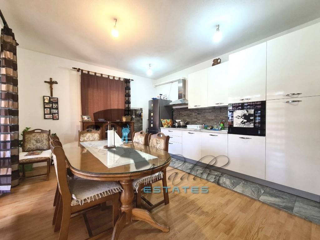 It contains a total of five apartments, including two on the ground floor, and one on each of the upper floors. On the ground floor, there is one one-bedroom and one two-bedroom apartment, each with its own living room and bathroom, as well as a hallway and staircase. The first, second, and third floors share spaces with the same floor plan and area: next to the staircase and entrance hallway, there are three bedrooms, a bathroom, a central hallway, a storage room, a WC, a spacious living room with a semicircular view outside, a very comfortable kitchen area, one smaller and one larger covered terrace, and a balcony. The house is of very solid construction built according to all applicable standards and is connected to all necessary infrastructure. It is characterized by abundant surrounding space, oriented to the sunny southern side and the western side with the sunset. It is very close to the city center (10 minutes on foot) and only 5 km from the airport. It is extremely affordably priced and an excellent investment opportunity for an impressive family house or for apartments or holiday rentals.