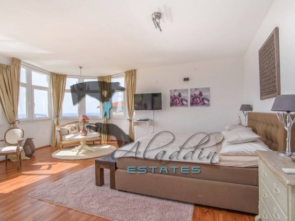 Na katu se prostiru tri prekrasne spavaće sobe, svaka s izlazom na jednu od dviju terasa koje krasi uistinu nenadmašan pogled na more i otoke. Tu je i glamurozno predsoblje, zapravo jedna komforna soba za opuštanje sama po sebi te još jedna ekskluzivna kupaonica, naravno upotpunjena s jacuzzijem. Na katu ima dovoljno prostora i za smještaj jednog elegantnog fitnes centra.