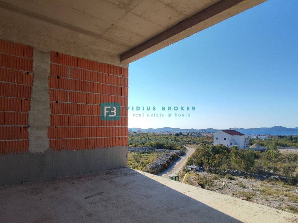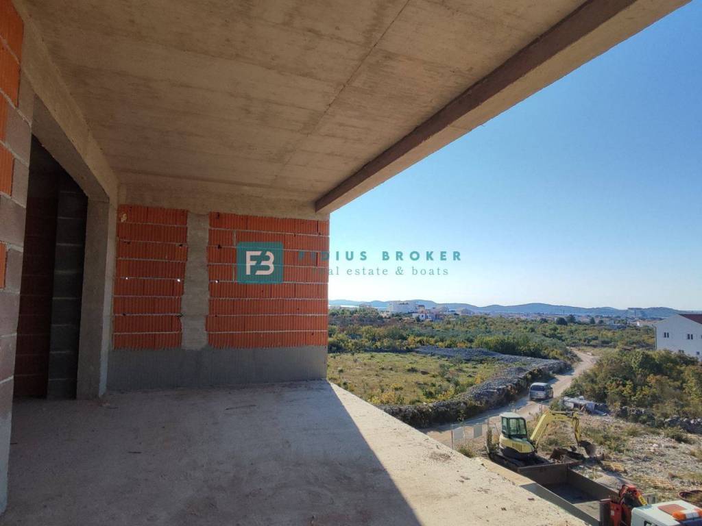 VODICE - For sale a modern apartment on the 2nd floor with two bedrooms with a sea view, located on the outskirts of the city, 1400 m from the center and 1500 m from the beach!