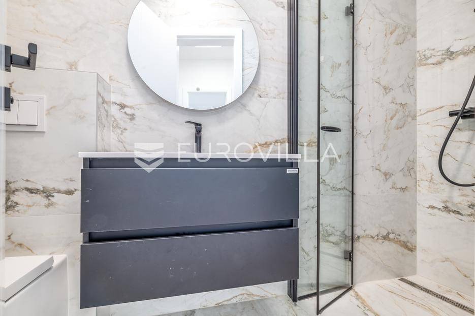 Zagreb, Črnomerec - luksuzan stan za najam (S1 - 64,55 m² + vrt 27,72 m²)U moderno izgrađenoj luksuznoj zgradi na mirnoj lokaciji u središtu Črnomerca iznajmljuje se trosoban stan vrhunske izvedbe, s uporabnom dozvolom i etažiranim vlasništvom. Objekt je izveden po najvišim standardima, s energetskim razredom A+, podnim grijanjem, PVC troslojnom stolarijom, liftom i videoportafonom.Stan u prizemlju sastoji se od dnevnog boravka s kuhinjom i blagovaonicom, dvije spavaće sobe, dvije kupaonice i ulaznog hodnika.