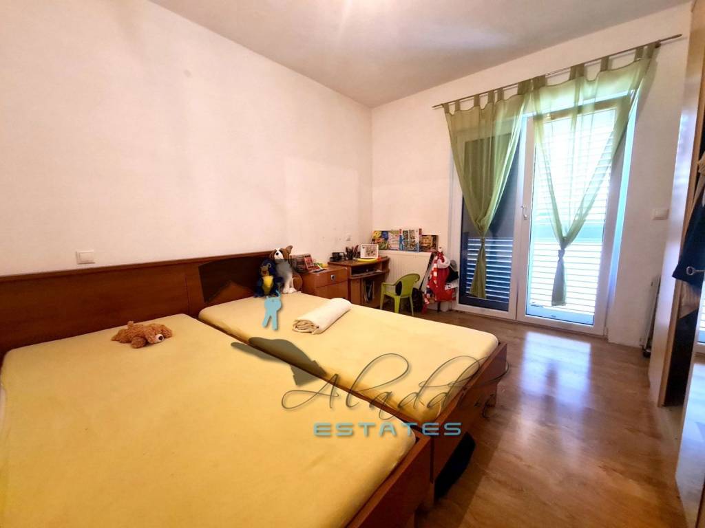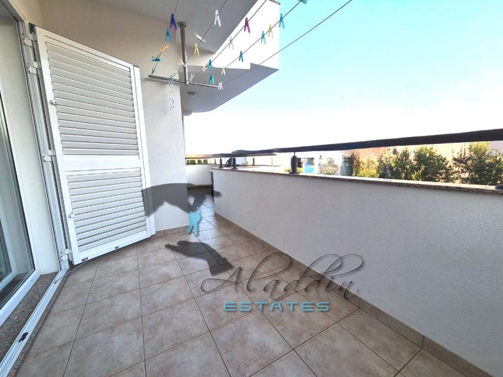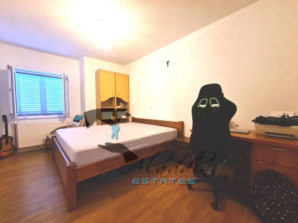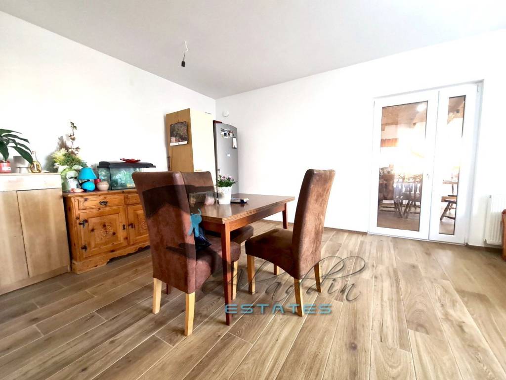 Very spacious and attractive three-room apartment on the first floor of a residential house in Okrug Gornji with a partial sea view. It consists of a luxurious living room combined with a kitchen of over 40 m², a separate dining room of 21 m², three large bedrooms of 11.50-13.50 m² each, three bathrooms (one unfinished), and a hallway. There are also two covered terraces, a large parking space (with the possibility of parking additional vehicles), and a comfortable garage for one vehicle. Altogether, the apartment offers 117.30 m² of interior space, or 140.53 m² of net living space with coefficients.