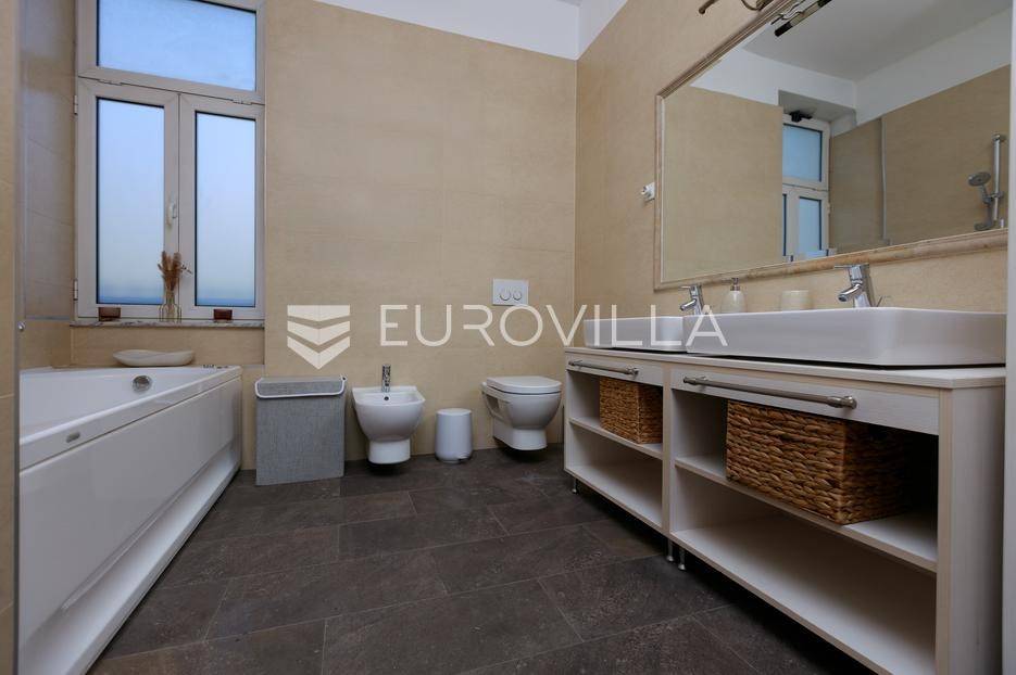 Prostran i sofisticiran stan smješten na drugom katu prekrasne vile u Opatiji, ukupne površine 205,88 m². Ova nekretnina spaja eleganciju i udobnost te pruža sve što je potrebno za vrhunski životni stil na jednoj od najpoželjnijih lokacija na Jadranu.Stan se sastoji od tri prostrane spavaće sobe, dvije moderno uređene kupaonice, komfornog ulaznog hodnika te dnevnog boravka povezanog s blagovaonicom. Kuhinja je pažljivo dizajnirana kako bi pružila funkcionalnost i estetiku u savršenom skladu s ostatkom interijera.Tri balkona i velika terasa površine 53,20 m² otvaraju se prema očaravajućem pogledu na okolicu, stvarajući idealan prostor za uživanje na otvorenom. Uz stan dolaze i dva spremišta - jedno unutar stana (1,40 m²) i drugo u prizemlju zgrade (10 m²), što osigurava dodatni prostor za pohranu.Poseban bonus ove nekretnine je vlastita okućnica od 63,50 m² - savršeno mjesto za odmor, vrtlarenje ili druženje na otvorenom.Ova nekretnina predstavlja izvrsnu priliku za one koji traže luksuzan, prozračan dom u mirnom, ali prestižnom dijelu Opatije. Idealno za cjelogodišnje stanovanje ili kao investicija u ekskluzivnu nekretninu na moru.Za više informacija i razgled slobodno nas kontaktirajte
