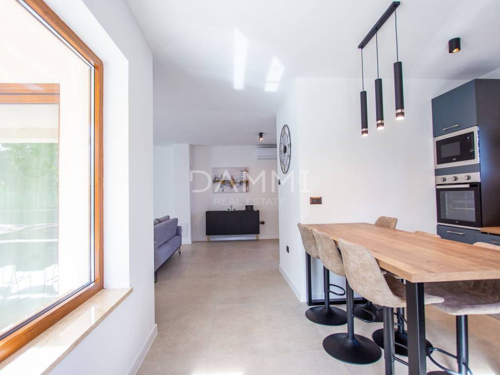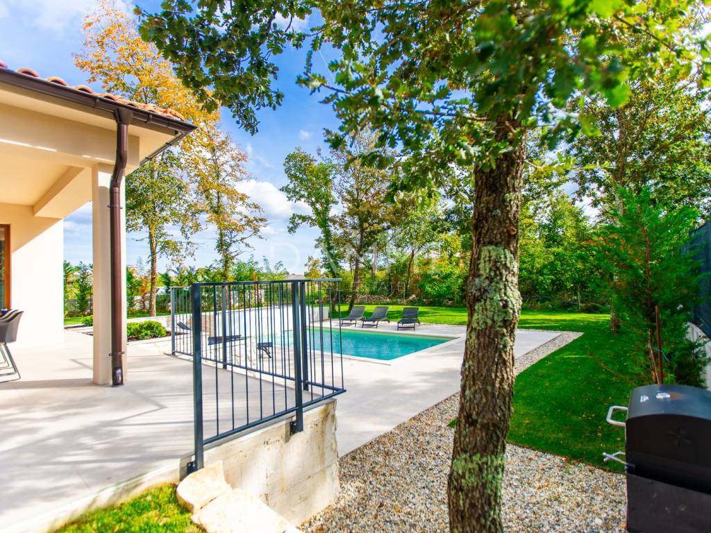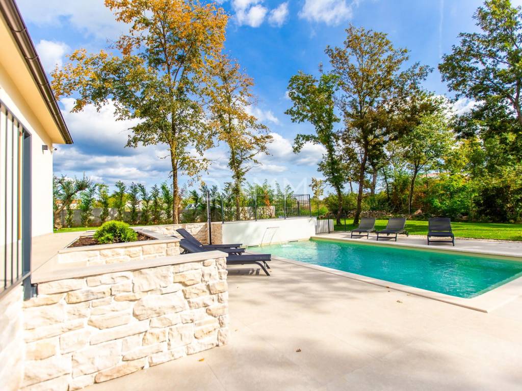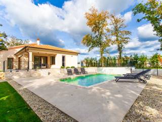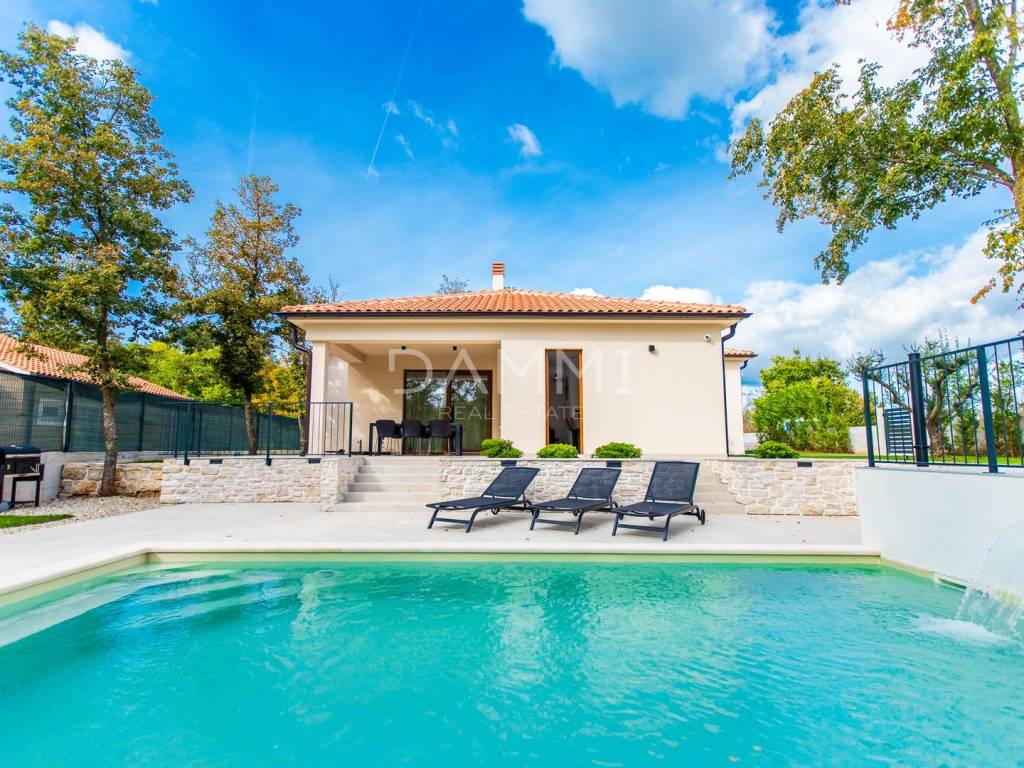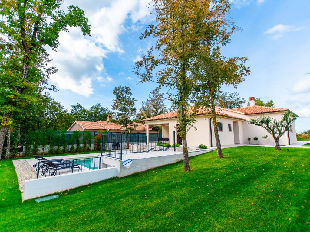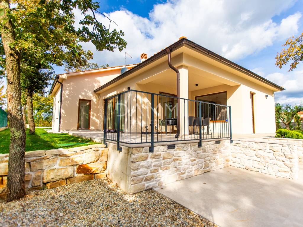 Na izrazito mirnoj lokaciji u zaleđu Rovinja između Žminja i Kanfanara smjestila se je ova šarmanta prizemnica za prodaju. Odmah na prvi pogled možemo vidjeti kako je svaki detalj pomno uređen od lijepe okućnice,  bazena pa sve do moderno namještene unutrašnjosti. Kuća neto površine 152.23 m2 sastoji se kuhinje, blagavaonice, dnevnog boravka, tri spavaće sobe s vlastitim kupaonicama, toaleta, hodnika, natkrivene terase, te dodatne prostorije koju budući kupac može koristiti kao četvrtu spavaću sobu ili ostaviti kao i sada kao igraonicu.