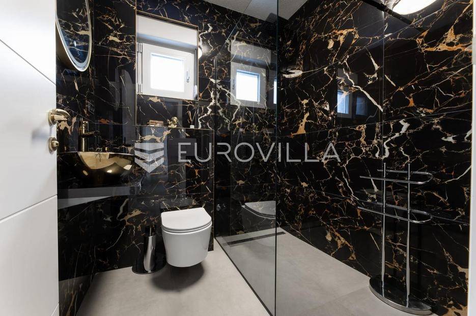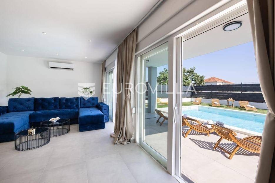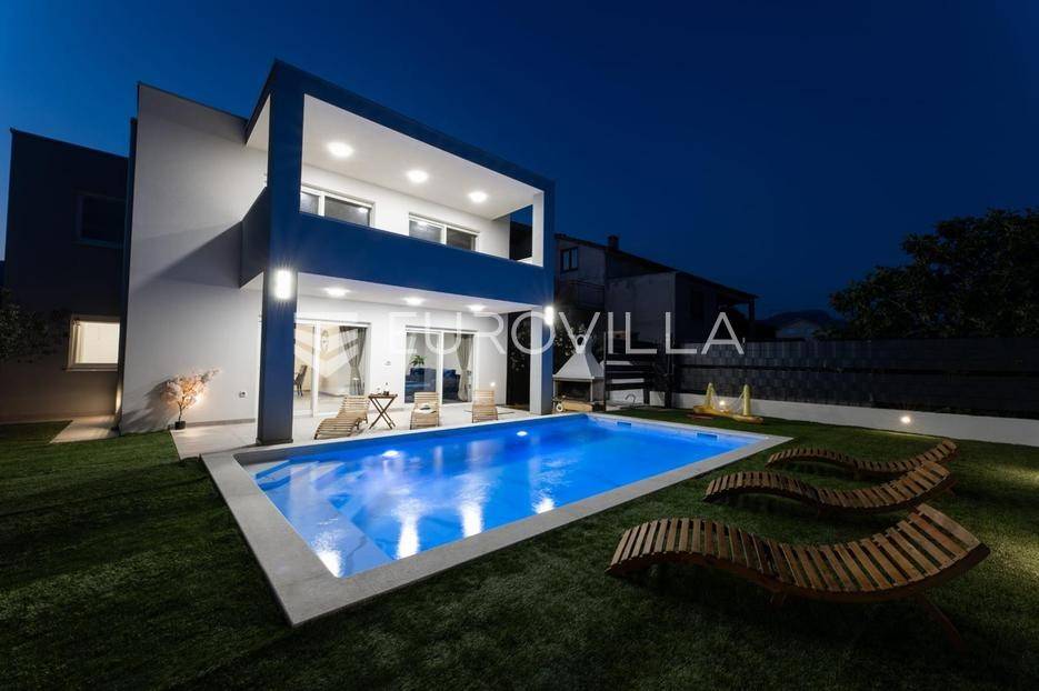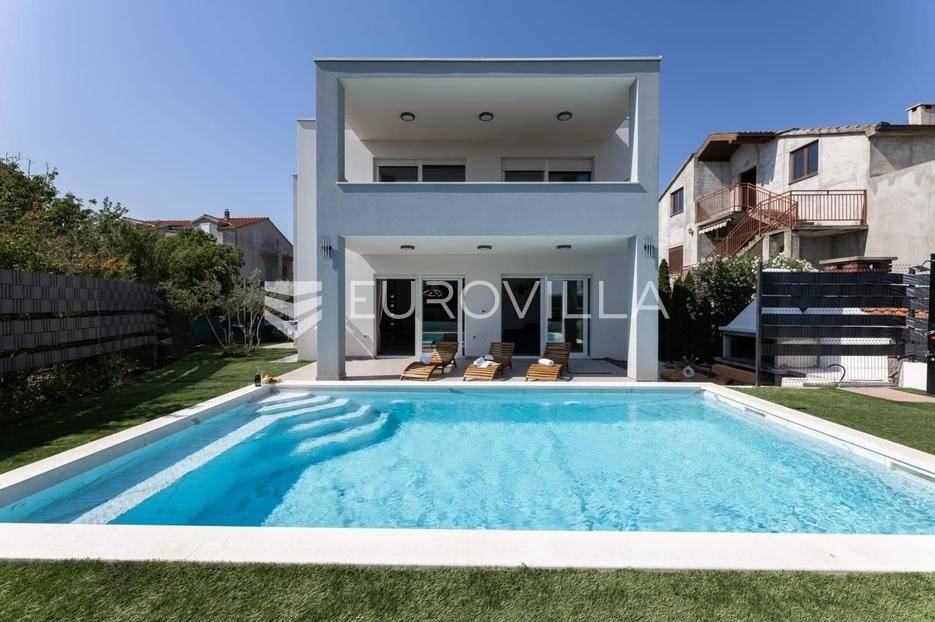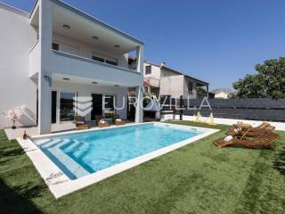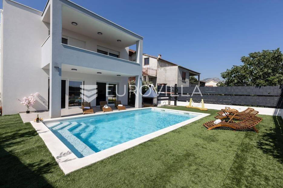 Kaštela, novoizgrađena samostojeća kuća s bazenom visokog standarda, parking za šest automobila.Novoizgrađena kuća bruto površine 230 m2, neto površine od 203 m2 razvedene na dvije etaže, sastoji se od prizemlja i prvog kata s okućnicom na kojoj je parking, tresa bazen te vrt s kaminom.Na etaži prizemlja nalazi se: predsoblje, prostrani dnevnog boravka s blagovaonicom otvorenog tipa povezan s kuhinjom, hodnik, tri sobe te wc i zajedničke kupaonica, ispred je prostrana terasa s bazenom i sunčalištem.Prvi kat je zasebna stambena jedinica s vanjskim stepenicama a se sastoji od od dva apartmana. Jedna manji jednosoban koji se sastoji od dnevnog boravka s blagovaonicom i kuhinjom, spavaće sobe te kupaonica i natkrivenog balkona. Drugi dvosoban apartman se sastoji od dnevnog boravka s blagovaonicom i kuhinjom, dvije spavaće sobe, predsoblja, kupaonica i natkrivenog balkona.Na sjevernoj strani objekta je kolni prilazi i parking za šest automobila.Samostojeća kuća s prostranom okućnicom, vrtom i parkingom za više automobila smještena u mirnom obiteljskom naselju, a blizini na pješačkoj udaljenosti od par min hoda nalaze se trgovine, vrtić, autobusna stanica kao i sve potrebni sadržaji za ugodan obiteljski život.Grad Kaštela j s jednom od najdužih obala smješten između dva UNESCO grada Splita (17km) i Trogira (10 km).Međunarodna zračna luka udaljena 5 km, kao i brodska marina te izvrsna pristupačna brza cesta čine ovu nekretninu izvrsnom investicijom i mjestom za život.Idealno za miran život te potencijal za iznajmljuje u ljetnim mjesecima što je čini dobrom investicijom.Za sve dodatne informacije stojimo Vam na raspolaganju.