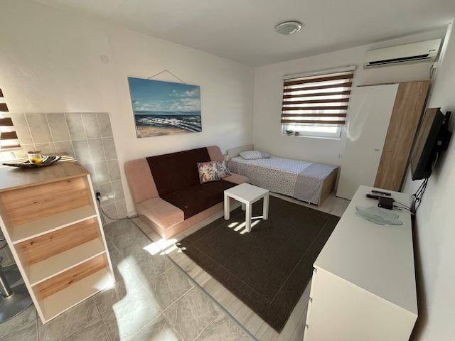Studio apartman 25 m2, iznajmljujem od 15.09.2025. do 15.06.2026 za radnike ili na cijelu godinu. Može se staviti bračni krevet umjesto za jednu osobu. Režije su uključene u cijenu.