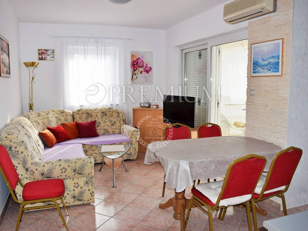 The island of Krk, wider area of town Krk, house with a garden built on a plot of 587 m2. The house consists of two apartments each with two bedrooms, bathroom, living room, kitchen, dining room and terrace of 9 m2. The house has a basement area of 9 m2 and in front of the house covered barbecue. The spacious, well kept garden with several parking spaces, two of which are covered, and the cistern. PVC, heating on wood, satellite TV, air conditioned. Proper documentation. The house is surrounded by greenery, situated in a peaceful location, 850 meters from the sea!