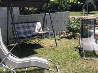 The yard and garden are well-kept, and additional amenities include a foldable pool, an outdoor shower, and a barbecue.