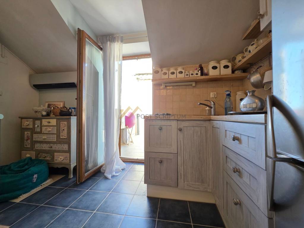 Unutarnje stepenište vodi na drugi kat koji čine opremljen studio apartman s wc-om površine 61m2, te terasa od 16m2.