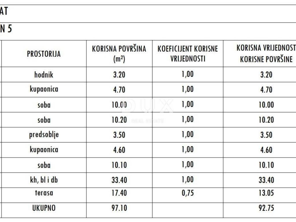 ZADAR, SUKOŠAN - Top penthouse! Underfloor heating, heated pool, 120 meters from the sea, roof terrace...! S5 For sale are new, modern apartments in beautiful Sukošan, in a building with a total of six residential units, ideal for a quiet life or as an investment for vacation and rental. Each apartment has three bedrooms, two bathrooms, a comfortable living room, dining room and kitchen, and a spacious terrace for enjoying the fresh air. The building is only 120 meters from the beach — just a three-minute easy walk to the sea. On the ground floor there is a shared heated pool of 30 m2, perfect for relaxing all year round, while around the building there is a green garden that provides a sense of privacy and peace. Each apartment has its own storage room, and the penthouses additionally have exclusive roof terraces with panoramic views. The apartments on the first and second floors also offer a beautiful view of the sea. The comfort and quality of construction are at the highest level: underfloor heating throughout the apartment, air conditioning in every room, electric shutters, mosquito nets... The completion of construction is planned by the end of 2026, and since the owner is a legal entity, the buyer does not pay real estate tax. Sukošan is a charming Dalmatian town known for its sandy beaches, clear sea and marinas, ideal for lovers of a peaceful life by the sea. It is located only 10 minutes drive from Zadar - a historic city with a rich cultural heritage, top-notch gastronomy and a vibrant atmosphere throughout the year. For more information and a tour, feel free to contact us - find your perfect home by the sea in Sukošan! Dear clients, the agency commission is charged in accordance with the General Terms and Conditions www.dux-nekretnine.hr/opci-uvjeti-poslovanja ID CODE: 42772 Josip Šestan Agent s licencom Mob: +385 91 799 6986 Tel: +385 91 480 8808 E-mail: josip@dux-dalmacija.com www.dux-dalmacija.com