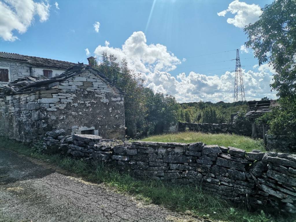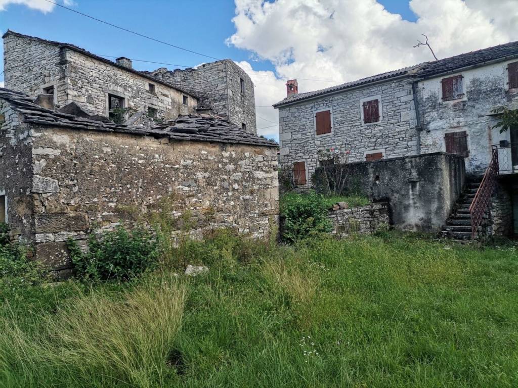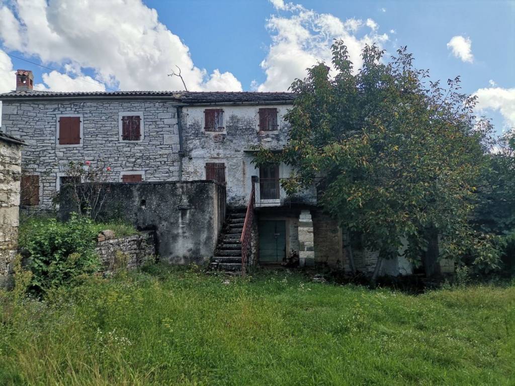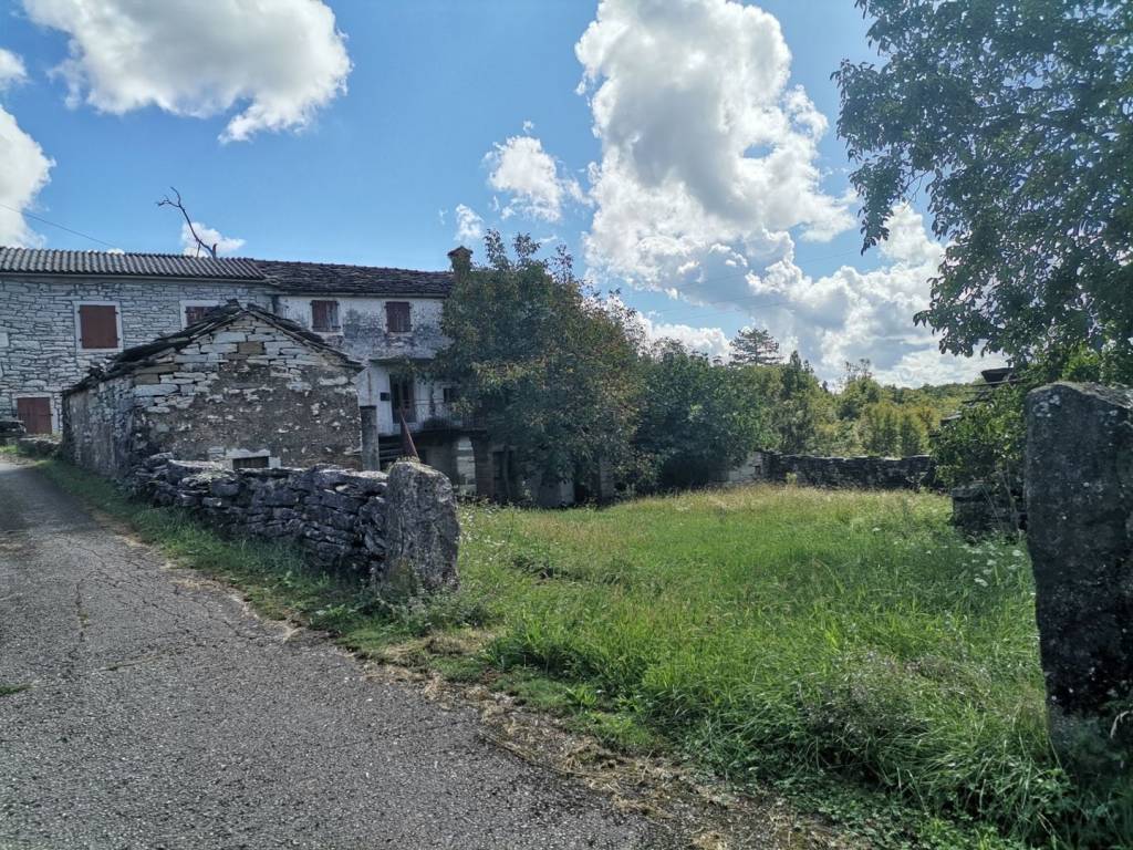 Oko 6 km od Oprtlja, oko 40 km od mora, prekrasan panoramski pogled, vrlo mirna lokacija, dvojna kamena kuća, cca. 150 m2 stambenog prostora na 3 etaže, vrt cca. 290 m2, priključci za struju i vodu. Postoji mogućnost kupnje dodatnih cca. 18.000 m2 poljoprivrednog zemljišta.