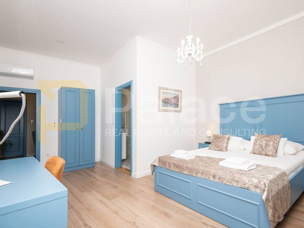 A spacious stone staircase and courtyard lead to the second floor where the property is located. This spacious apartment is spread over two floors and is currently operating as a well-established tourist accommodation with high ratings. It consists of a total of nine spacious bedrooms, each with its own modern bathroom, providing exceptional privacy and comfort to guests.