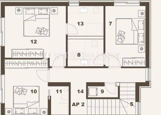 For sale is a luxurious two-story apartment of 124 m² spanning the first and second floors of a modern new building in Volme, a peaceful neighborhood known for its proximity to the sea and green surroundings.
