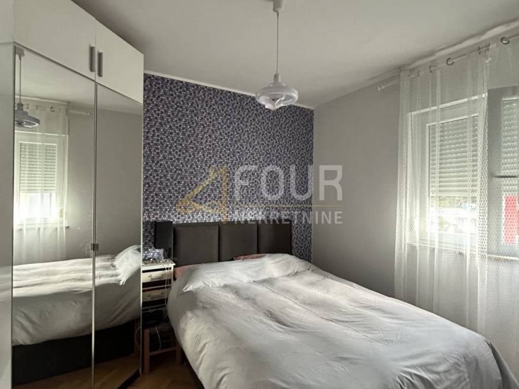 A comfortable two-level apartment for sale in Srdoči, with a total area of 85.59 m², located on the second floor of a smaller, newer residential building. The lower level consists of a spacious living room with a dining area and an open-plan kitchen, one bedroom, a bathroom, and a balcony. The upper level features two bedrooms and an additional toilet.