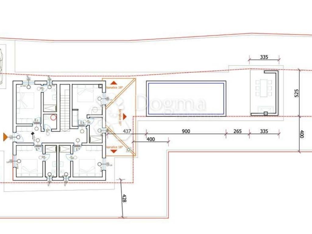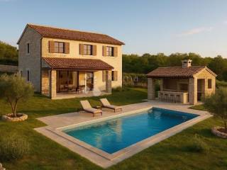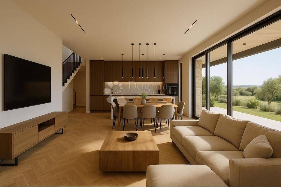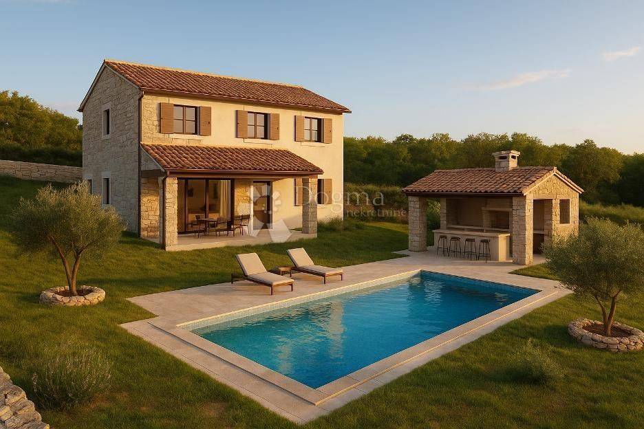 Luxurious modern house with a swimming pool and 4 bedrooms – Ready to move in by the end of February 2026! In a quiet and private location, surrounded by forests, the construction of a modern house that combines comfort, quality and functionality begins. Layout: Ground floor: spacious and bright kitchen with dining room, living room with access to the terrace, pantry and guest toilet. First floor: 4 bedrooms – each with its own bathroom and air conditioning. Outdoor space: heated swimming pool of 36 m², covered terrace and summer kitchen. Special features: Two separate entrances – one directly from the parking lot to the first floor, the other through the ground floor. Underfloor heating via heat pumps throughout the house. Air conditioning in all rooms. High-quality PVC/ALU joinery with electric shutters. Possibility of choosing tiles according to your own taste. Net area of the house: 143.20 m². Prices and options: €370,000 – turnkey, without furniture. €420,000 – fully furnished house. The price includes VAT. The location is quiet and private, yet close enough to all the amenities needed for a comfortable life. The investor is proven and reliable, and the completion of the works is expected by February 15, 2026. For additional information and viewing, please call: FILIP MARIĆ Licensed agent Mob: +385 91/335-5350 filip.maric@dogma-nekretnine.com