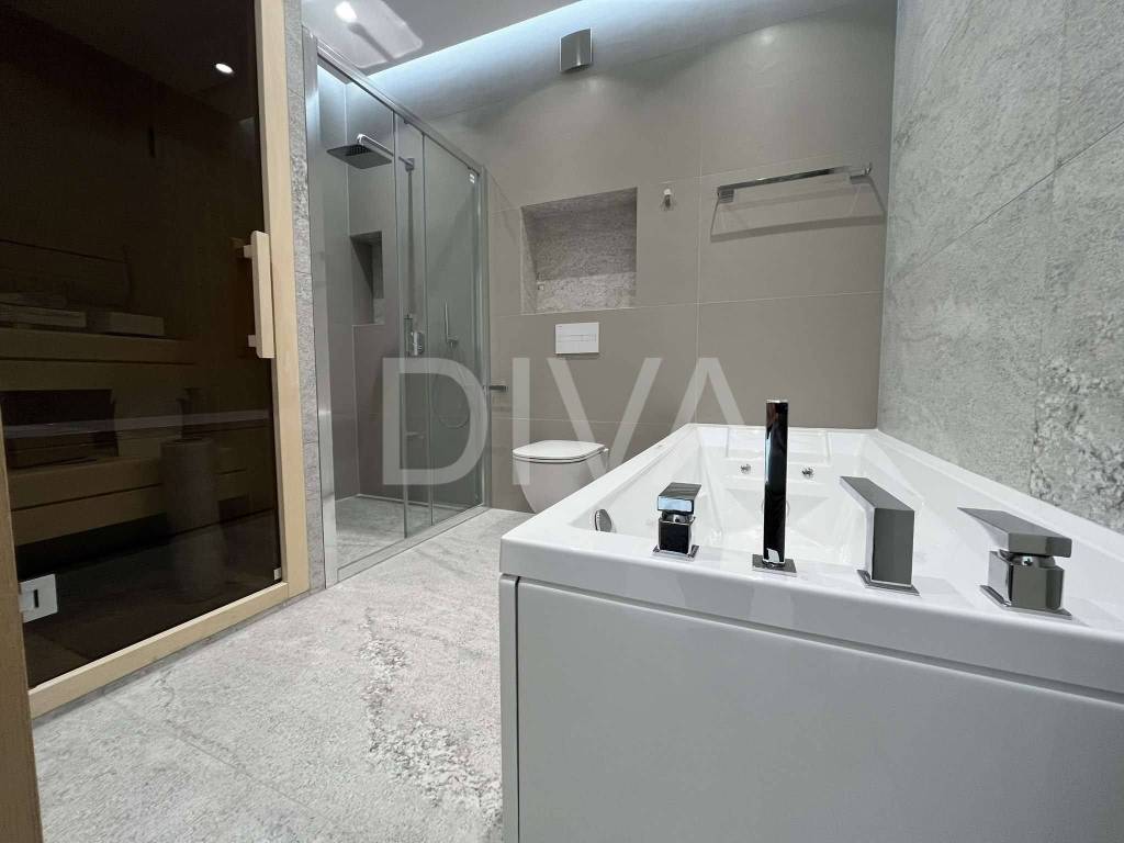 Kupatilo u roditeljskom apartmanu namješteno je na način da pruža komfor wellnesa te omogućava opuštanje u udobnosti vlastitog stana.