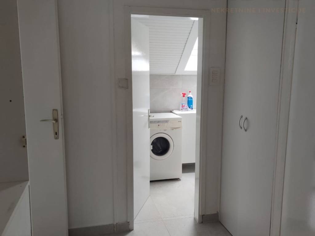 Prizemlje se sastoji od predsoblja, dnevnog boravka s trpezarijom, sobe, kuhinje i kupaonice, a kat od dnevnog boravka s kuhinjom i blagovaonicom, kupaonice, jedne sobe, predsoblja s ugradbenim ormarima, garderobe te spavaće sobe na galeriji. Nekretnini pripadaju i 2 ostave u podrumu i dio okućnice.