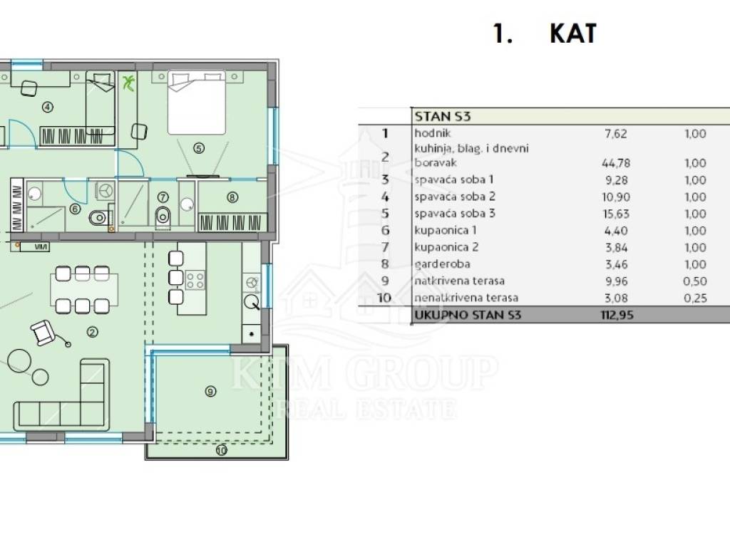 GROSS AREA OF THE APARTMENT IS 115.45 m2.
