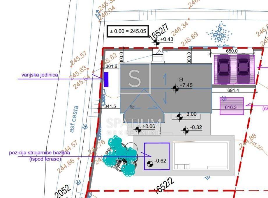 ISTRIA, RAPONJI, We are offering a building plot with a valid construction permit. The planned residential building consists of two floors (ground floor + first floor), including a rectangular outdoor swimming pool measuring 8.0 x 4.0 meters, with an average water depth of 1.33 meters.