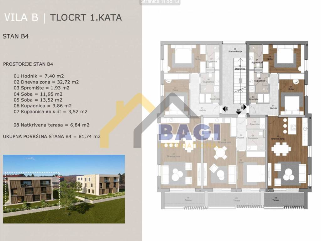Apartment on the first floor B4 - 81.74 m2 consists of a hallway, living room, kitchen, dining room,