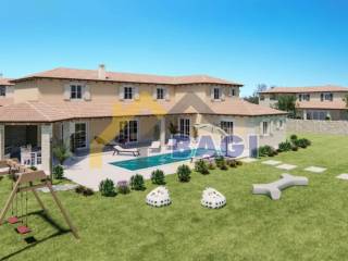 The plot is 2783m2, the square footage of the living space is 293m2 net. The dimensions of the pool are 11.5x3.5m2, the beach of the pool is paved with stone. Parking for three cars paved with gravel. The entrance gate to the village is powered by an electric motor, remotely controlled. Internal and external wooden carpentry Ceramic floors, stone stairs