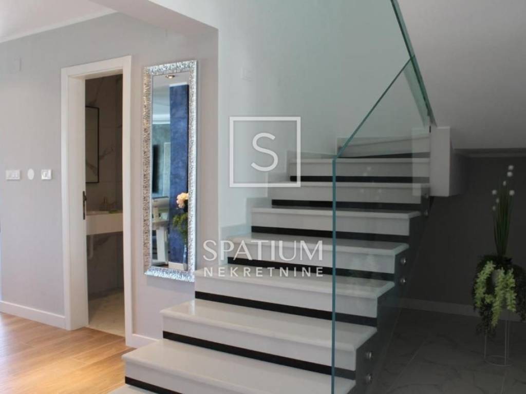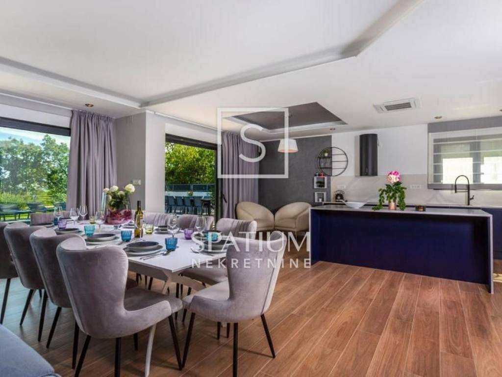 LOVRAN, we are offering a newly built villa with a beautiful view of the sea, which is only a few minutes' drive from the sea and beaches. In its total living area of 400 m2, it has three floors, a ground floor and two floors. On the ground floor there is a spacious living room with an open space kitchen and dining room, a bathroom and a recreation room. A stone staircase leads us to the first floor, where there are five spacious bedrooms, each with its own bathroom, four of which have access to a spacious balcony with a view of the sea and the pool. On the second floor there is a storage room with access to a roof terrace of 170 m2 with a barbecue, a lounge area and a beautiful panoramic view of the sea. The garage on the ground floor covers 36 m2 and has enough space for two vehicles, as well as storage space. Heating and cooling is arranged with an air conditioning system, and floor heating is also installed. The yard has a total square footage of 220 m2 with a swimming pool, barbecue, sunbathing area and space for socializing. The villa has an A+ energy efficiency certificate and is low-energy. A completely fenced garden, 4 private parking spaces, insulation on the facade, video surveillance, the most modern built-in materials of the highest quality, irrigation and designer furniture are just some of the qualities that we would highlight in this wonderful villa. The villa is located in a quiet street surrounded by greenery, it is also very suitable as an investment and can be used as a tourist or daily rental as a 5-star holiday home. Lovran is a town located on the steep eastern slopes of Učka. This is a city with a long and rich past with a long tradition in tourism, and it got its name from the laurel that grows in this place. The advantage of Lovran is its geographical location, which allows you to visit our most beautiful national parks (Plitvice, Brijune or Risnjak), the Istrian coast and its charming towns, the islands of Krk, Cres, Rab, Postojna Jama in Slovenia, Venice in Italy in the form of one-day trips. , and many other places. In short, Lovran is an ideal place for people who want to rest in a clean and peaceful place rich in history and cultural sights. For all other information, please feel free to contact us. Luka Toth mediation assistant +385 91 9161 959 luka@spatium.hr Spatium nekretnine +385 51 272 903 info@spatium.hr