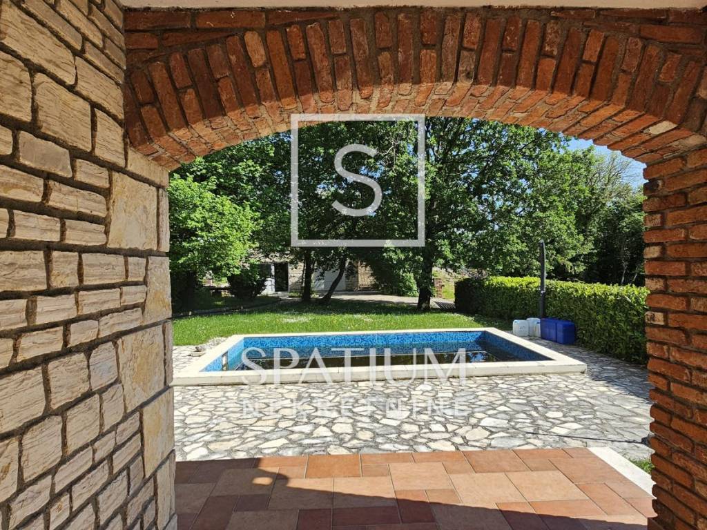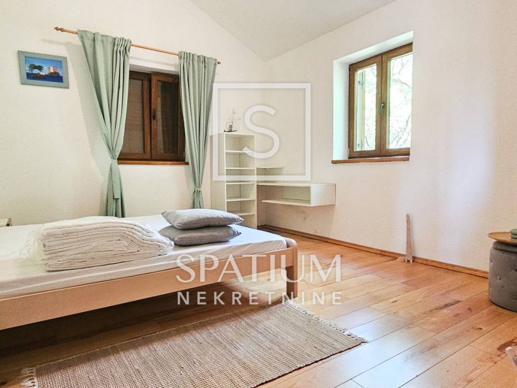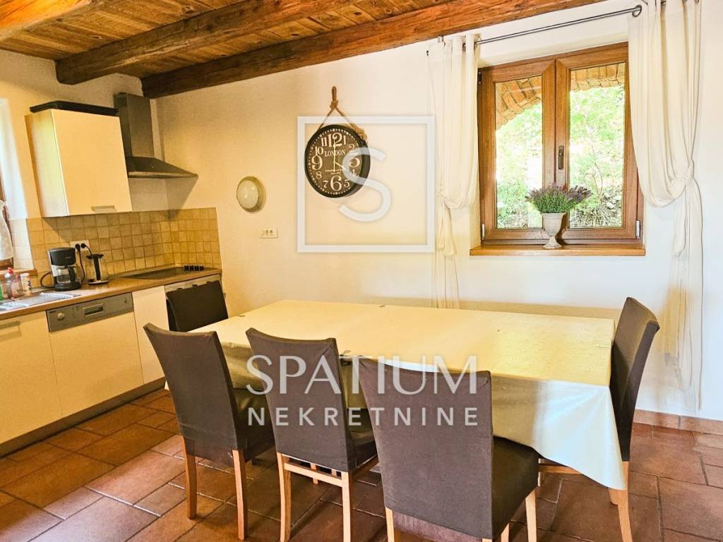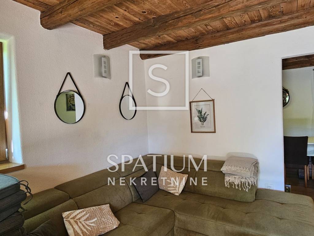 GRIŽANE, VINODOL MUNICIPALITY, detached house with swimming pool. It is located in a quiet area, surrounded by nature, on a plot of 850m2. It consists of ground and first floor. Ground floor: entrance hall, kitchen with dining room, living room with fireplace and exit to the courtyard terrace, bedroom, bathroom, storage and preparation for central heating. First floor: three bedrooms, bathroom and storage room, large balcony. The ground floor and first floor are connected by an internal staircase. Air conditioners in the rooms, PVC carpentry, quality construction, fully furnished, carefully decorated in a rustic style that fits perfectly into the natural environment. Inside the spacious and beautifully decorated, fenced yard there is a 20m2 swimming pool, a barbecue, an auxiliary building of 50m2 with a sauna, a bathroom and an entertainment area. A property worthy of attention!