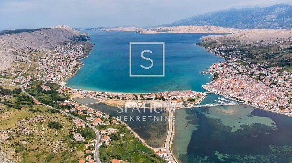 PAG, In the offer we received a building plot of 813 m2 in a commercial and residential zone next to the main road near the city center. The terrain has a regular shape on a flat surface. It is only 500 m away from the sea and all essential amenities.