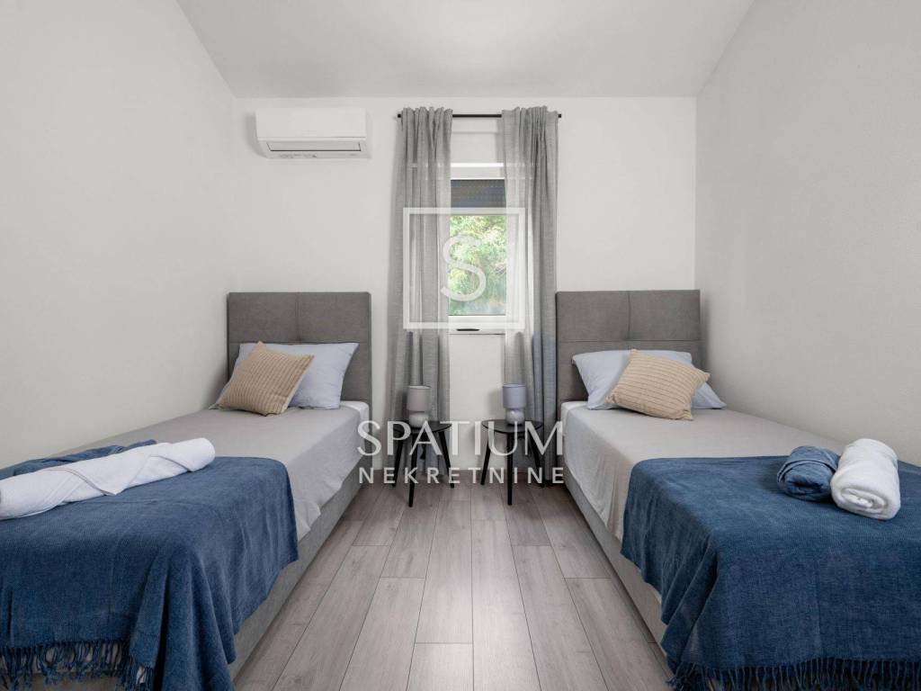 LABIN, we have received a new building in the vicinity of Labin. Detached house with a pool in a quiet street surrounded by greenery, located on a plot of 915m2. It consists of a hallway, a storage room, 3 bedrooms and 3 bathrooms. From the living room and the kitchen there is access to a spacious covered terrace with a swimming pool and sunbathing area, and a sunny area for relaxation and enjoyment. The house is designed as a one-story house and offers a spacious and functional floor plan. It is air-conditioned (split system heating and cooling), and fully equipped with all the necessary contents and things. It is sold fully furnished and ready for moving in or vacation. It is also ideal for renting due to its micro location. Labin is a medieval Istrian town, located on a hill above the beautiful Kvarner Bay where you can enjoy a beautiful view of the surrounding nature. For all lovers of gastronomy, this city offers numerous restaurants that offer their guests traditional Istrian specialties. During the summer, Labin is particularly attractive because of its music festivals and cultural events. For all other information, please feel free to contact us. Leo Cerniar licensed agent + 385 95 9014 093 leo@spatium.hr Spatium nekretnine + 385 51 272 903 info@spatium.hr