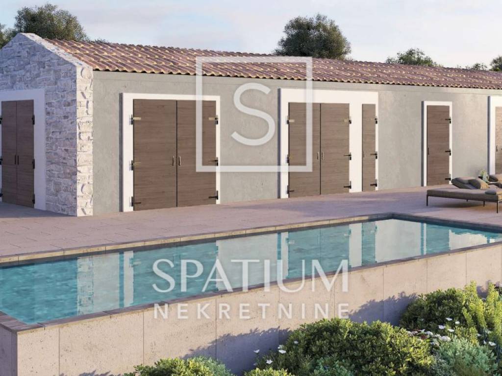 OPRTALJ, BUJE, we offer a building plot of regular shape, with an area of 900 m2. A building permit has been obtained, which envisages the construction of a single-storey house of 210 m2 with a swimming pool, storage room and space for pool equipment and a summer kitchen on the terrace.