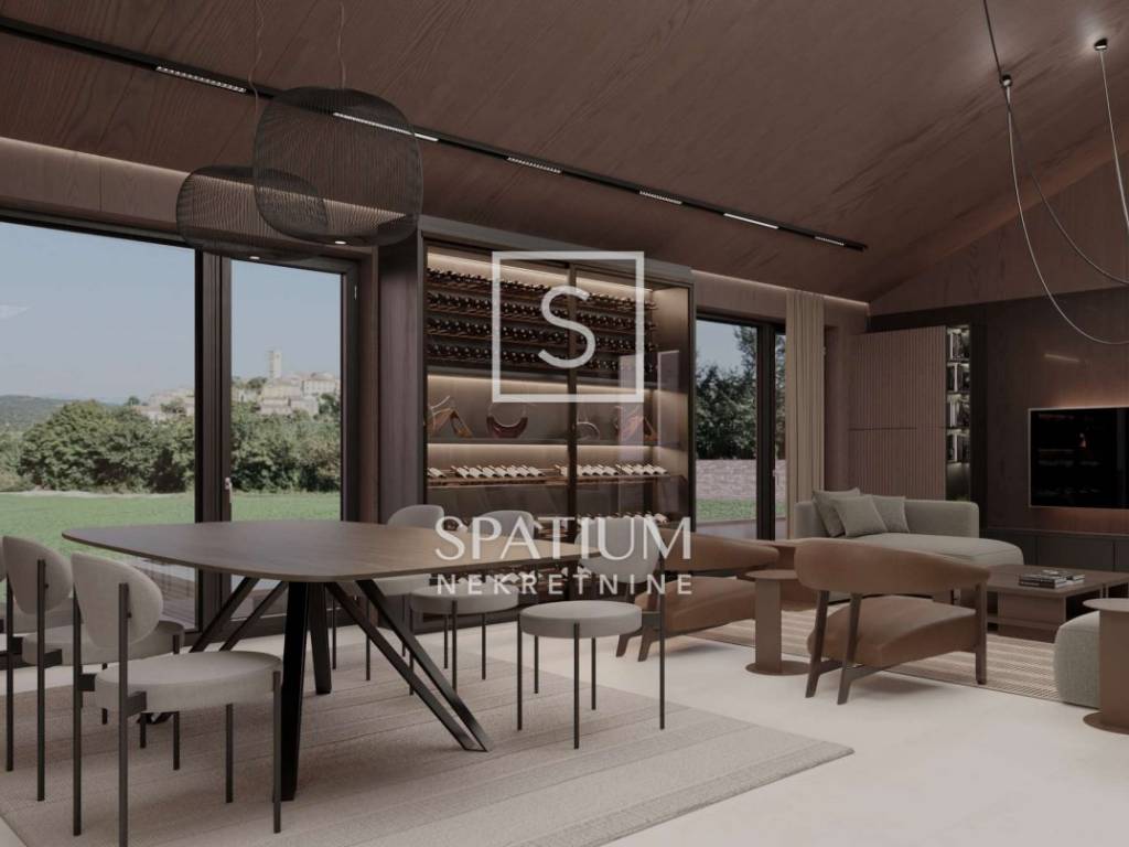 The house is designed in the authentic Istrian style, and the perfect impression of the entire property is given by an open view of the old town of Oprtalj and the green belt along the plot.