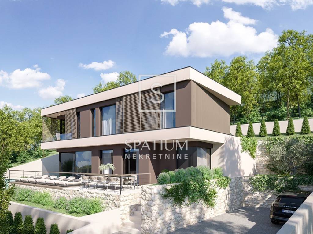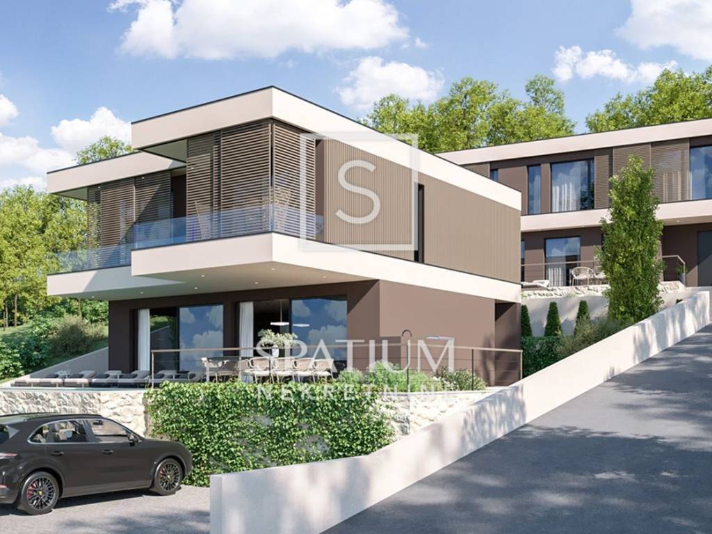 LABIN, we offer two building plots with a total area of 782 m², located in a peaceful neighborhood. Both plots provide a panoramic view of the Kvarner Bay and are situated next to an asphalted road, in a quiet and well-maintained area with new, modern houses. The plots come with complete project documentation and valid building permits for the construction of two exclusive modern villas with outdoor pools, allowing future owners to quickly realize their investment.
