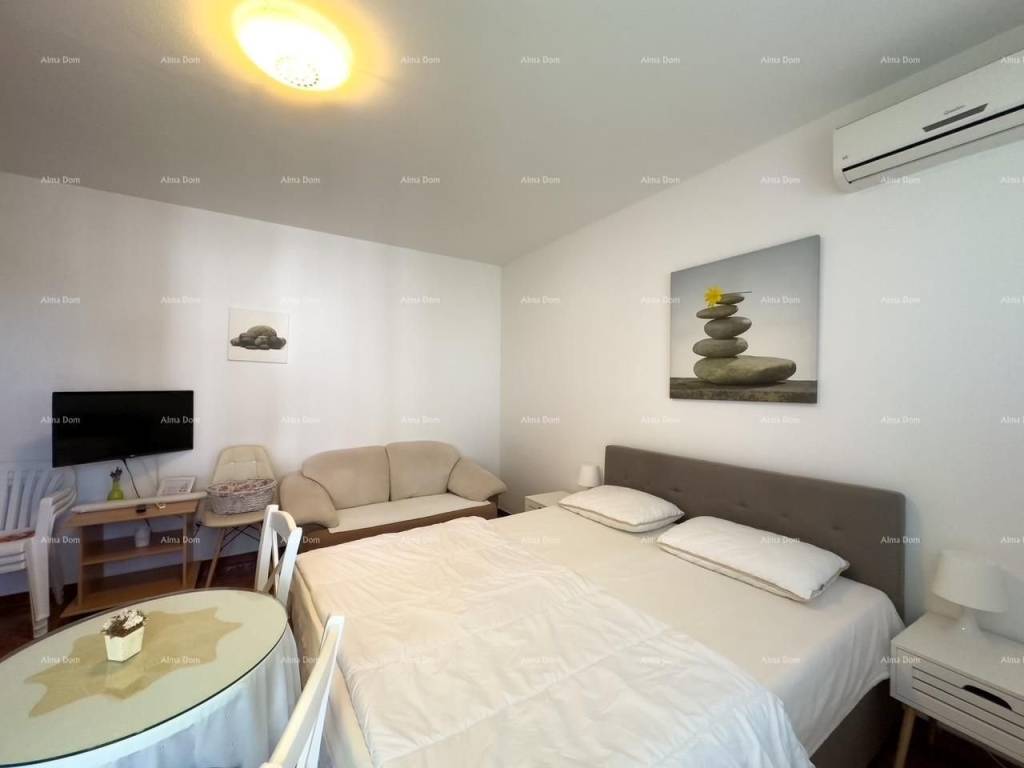 We are selling a studio apartment (2) in an excellent location in Medulin!The apartment is located in a house with a total of ten apartments.It consists of a bathroom and a large room that includes a kitchen, living area, and a sleeping bed, with access to the terrace.Air conditioning for heating and cooling, parking in the yard, and a shared summer kitchen with a barbecue for all residents.The house is furnished and is being sold as such.For more information, feel free to contact us:Info: Azra Valjevac +385 91 611 5706Email: azra@almadominvest.comWebsite: www.almadom.comContact: Gojko Đurković +385 95 4700000Email: gojko@alma-nekretnine.com