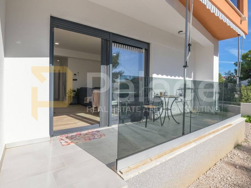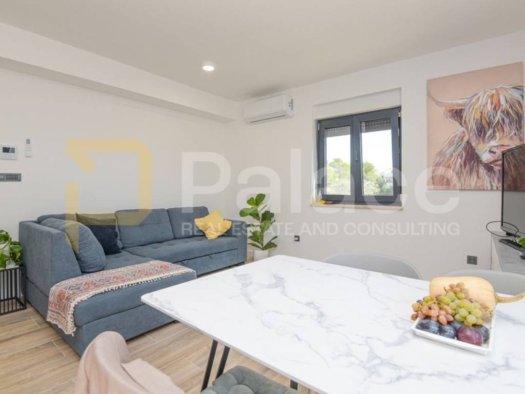 Offered for long-term lease, a new, fully furnished apartment in Brodarica near Šibenik, just 100 m from the sea, with a terrace, large garden, and parking space.