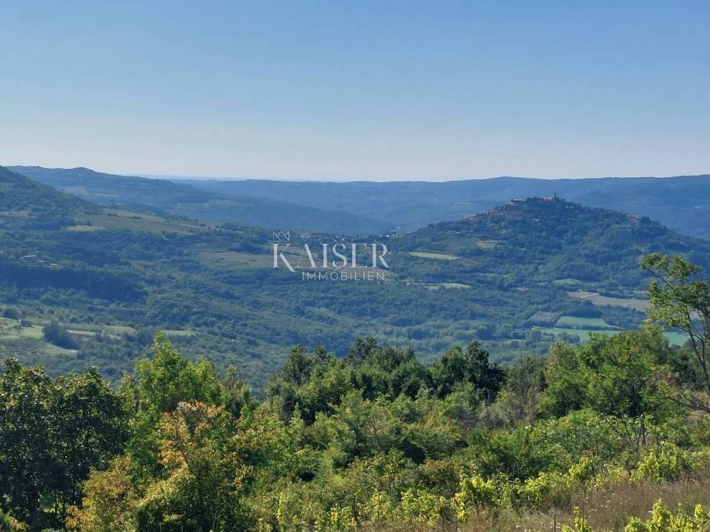 Kaiser Immobilien offers for sale a building plot with a sensational view of Motovun, the surrounding hills and the sea. It is located in a secluded area near a small Istrian village on a hill. The terrain has an elongated shape, a slight slope, south orientation. The total area is 3000m2, of which 1300m2 is for construction. The rest of the terrain is fertile agricultural land. It is located next to the paved road itself, electricity and water connections right next to the land. Ownership clean.