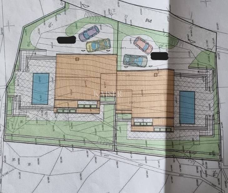 Below the Učka mountain and Lisinska šuma, not far from Matulji, is this quiet and beautiful location of construction land. The place Matulji, a shopping and cultural center near the city of Opatija, with its amenities, offers proximity to shops, a fish market, a pharmacy, a school and other important facilities and necessities for life, only 10 minutes away by car from the location. Nearby are trails and paths for nature lovers, cycling and hiking. The configuration of the land is in 2 terraces and a slope towards the sea. A location permit and a confirmation of the main project were obtained for the land, according to which a semi-detached house is planned for gross 2 times per 246 m2 and 2 times per 110 m2 floor plan area. The project can be adapted to wishes by requesting an amendment to ch. project. Near the land there is basic infrastructure (electricity, water), it is necessary to build a septic tank. From the field there is a beautiful view of the sea and Rijeka. The property is 15 minutes away by car from the first Opatija beaches. It is surrounded by private houses and beautiful villas. The bus stop is 10 minutes away on foot. Major cities like Zagreb are approx. 1.30 minutes away by car, Ljubljana approx. 1.30 min, Poreč approx. 1 hour, Krk airport approx. 40 minutes, Rijeka approx. 20 minutes. For additional information and viewing, contact your agent: Eli Lovko, mob: 0916133776; eli@kaiser-immobilien.hr Agency commission is 3% + VAT