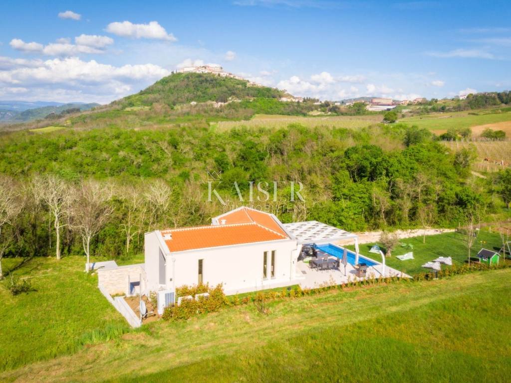 Kaiser Immobilien presents you a beautiful modern villa with panoramic views of Motovun and the magical Istrian nature that surrounds it. Located just a few kilometers from the heart of this historic town, the villa offers the ideal combination of privacy and an active lifestyle.