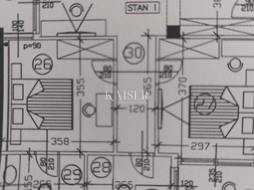 Kaiser Immobilien agency offers an apartment in Veli Vrh, an attractive and rapidly growing part of Pula. Pula is, in addition to being a tourist destination, an urban city and the main Istrian port. It is located in the southwestern part of the Istrian peninsula, and impresses with its history and well-preserved monuments from the Roman era. Veli Vrh is a part of the city that is developing extremely quickly, and is becoming an attractive part that provides all the conditions for quality living and living. The apartment is located at the very entrance to the city, 400 m from the sea, on the second floor of a building with an elevator, close to all the amenities needed for family life. Upon entering the apartment, a view opens up to the open space living area consisting of a kitchen, dining room and living room measuring 25.65 m2, from which there is an exit to an elegant closed loggia that can be used regardless of the weather. The apartment has two bedrooms, one of which has its own bathroom, while the other has access to another closed loggia. The apartment has another bathroom and a hallway, as well as its own parking space. It is equipped with aluminum locks and security doors, quality ceramics and a modern bathroom. This apartment is being sold as a share of the building's floor, because the floor has been converted from a business to a residential area. Pula center: 4 km Pula Airport: 9 km Zagreb Airport: 270 km Ljubljana: 199 km Vienna, Munich: 600 km The agency commission for the buyer is 3% + VAT, and is paid only when selling the property, when signing the first legal act. For all further information, please contact: Marijana Cuculić Phone: + 385 98 186 9950 E-mail: marijana.cuculic@kaiser-immobilien.hr