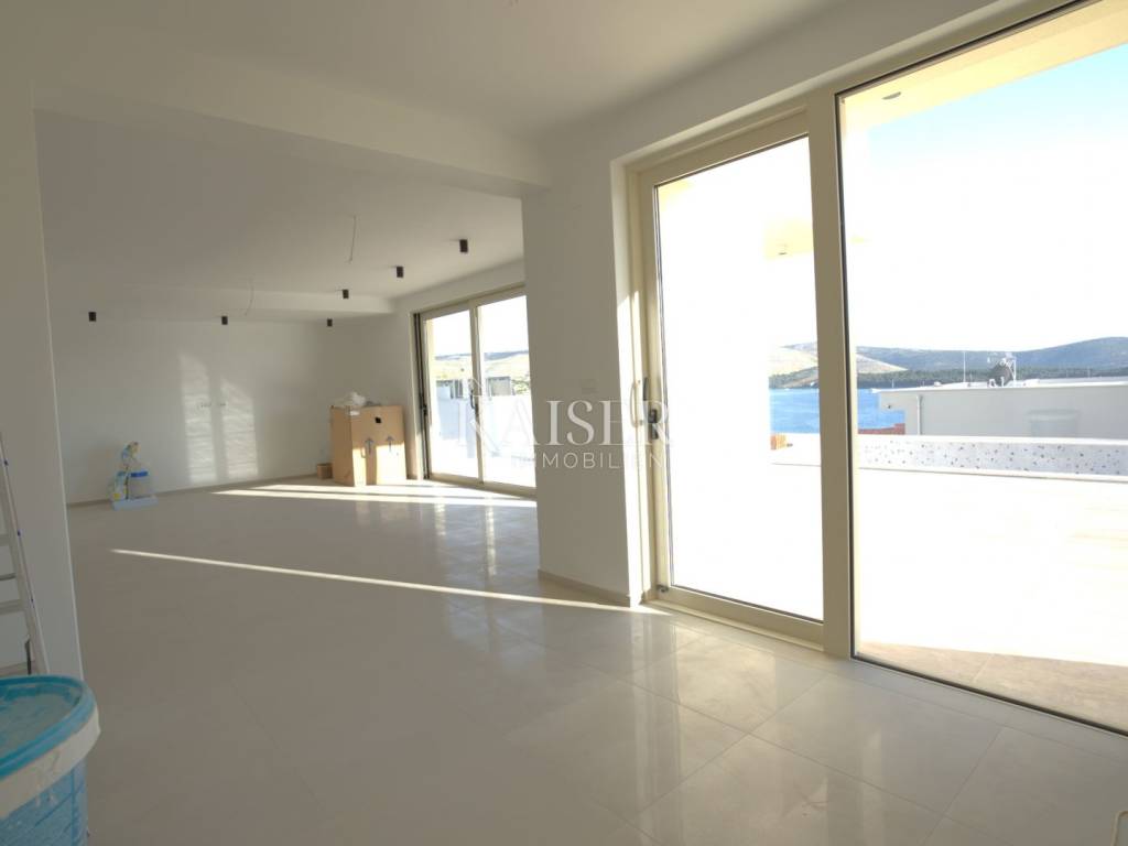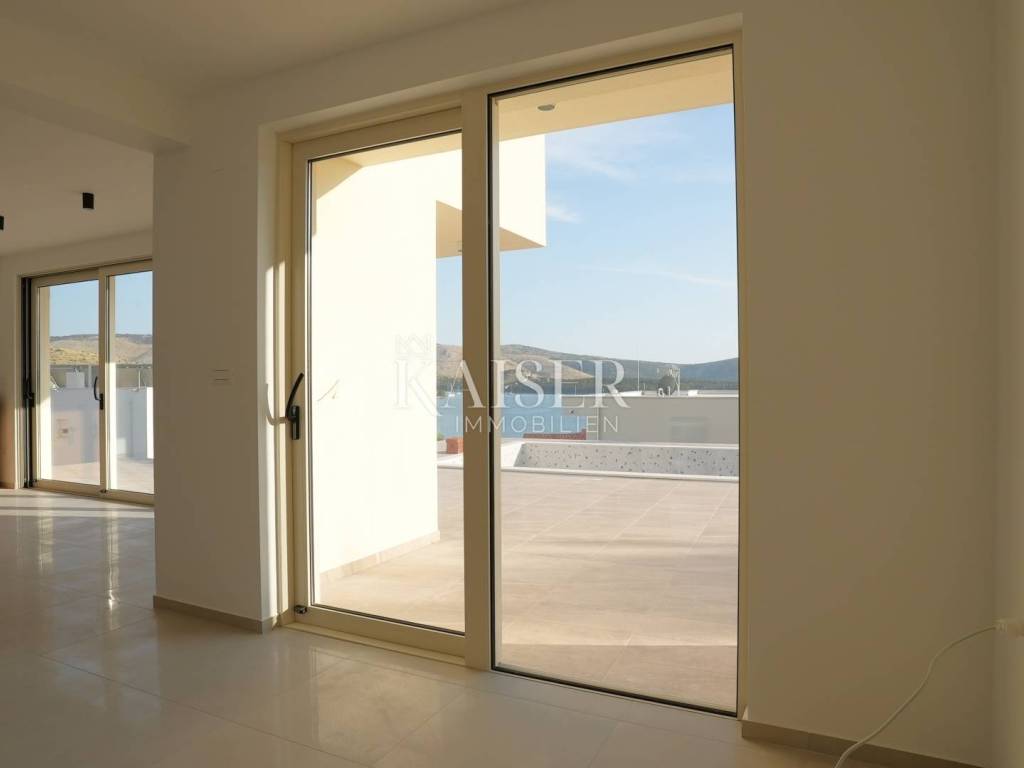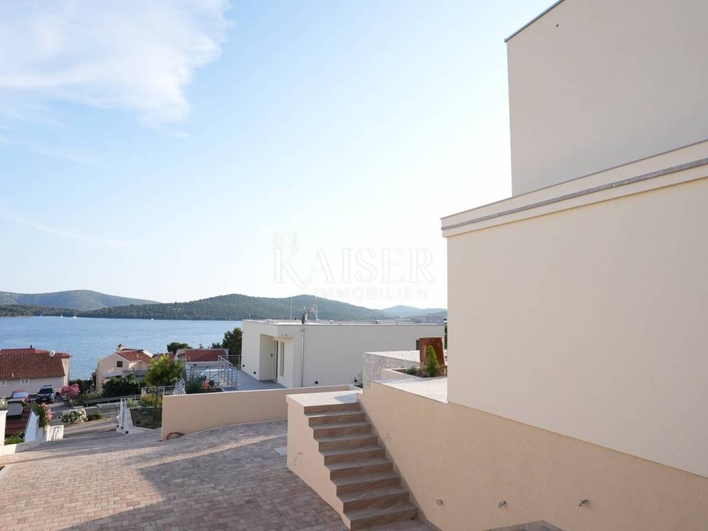 Žaborić, Jasenovo – Luxury three-bedroom house 171.15 m² with panoramic sea views Žaborić is a charming seaside village located near Šibenik, known for its crystal clear sea, well-maintained pebble beaches and promenades that follow the natural landscape. Thanks to its excellent transport connections with the A1 motorway and proximity to Split airport, Žaborić is an attractive location for a quiet family life, vacation or investment in a tourist rental. Kaiser Immobilien presents you with a luxurious and functionally arranged three-bedroom apartment with a total area of 171.15 m², which extends over two floors (basement and ground floor) of a modern residential building. The property is located in an attractive and quiet location with a stunning sea view. The apartment consists of two floors: Basement (106.02 m²): * spacious hallway (17.57 m²), * storage room (6.34 m²), * toilet (3.72 m²), * staircase (2.22 m²), * bedroom (18.20 m²), * bathroom (5.54 m²), * kitchen (10.98 m²), * living room with dining room (29.88 m²), * covered terrace - loggia (2.84 m²) and additional covered terrace (8.73 m²). Ground floor (73.05 m²): * two spacious bedrooms (15.53 m² and 14.40 m²), * hallway (10.29 m²), * staircase (6.38 m²), * two bathrooms (5.68 m² and 8.76 m²), * wardrobe (3.64 m²), * entrance (3.01 m²), * terrace - loggia (2.67 m²), * balcony - loggia (2.69 m²). The total usable area of the apartment is 171.15 m². . The price of the house includes: * preparation for underfloor heating in all rooms, * preparation for air conditioning units in all rooms, Quality construction includes 10 cm of thermal insulation of the facade, concrete roof structure with additional thermal insulation, PVC joinery with roller shutters and mosquito nets and security entrance doors. The building has a landscaped garden and is located in a dead-end street with no traffic, which ensures complete privacy and peace. Proximity to amenities: * Beach – 450 m * Shop – 500 m * Restaurant – 700 m * Šibenik city center – 8 km * Krka National Park – 20 km * A1 motorway – 10 km * Split airport – 55 km Distance to major cities: * Zagreb – 340 km * Split – 80 km * Zadar – 95 km * Rijeka – 270 km * Ljubljana – 390 km * Vienna – 680 km * Munich – 790 km This luxury apartment is the perfect choice for family life in a peaceful setting by the sea, but also as a valuable investment for tourist rental with an excellent return on invested capital. The agency commission for the buyer is 3% + VAT and is paid in the case of purchasing a property, upon conclusion of the first legal act. Viewing the property is possible only with the prior signing of a real estate brokerage contract. If you would like to visit the property in person, please contact: Joško Bašić E-mail: josko@kaiser-immobilien.hr Tel: +385-91-511-2693 http://kaiser-immobilien.hr/
