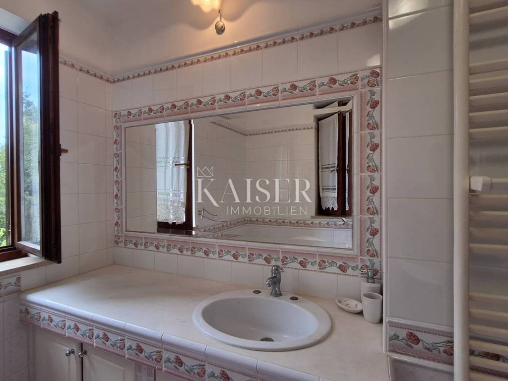 Kaiser-immobilie presents a family house near Opatija, in the town of Veprinac, with a beautiful view of the Kvarner Bay and the islands. The house consists of a ground floor and an upper floor. The ground floor has: 2 bedrooms, a kitchen with a dining room, 2 bathrooms, a Finnish sauna and a recreation room. The upper floor has 3 bedrooms, two bathrooms, a kitchen, a dining room with a living room and an exit to the terrace with a beautiful view of the sea and Rijeka with the islands. The heating of the building is central, using oil, on the ground floor there is a good and beautiful wood-burning stove, and in the living room on the upper floor there is an air conditioner for heating and cooling. From the dining room on the ground floor we exit to the garden where there is a swimming pool with an outdoor shower and a gazebo with a barbecue, surrounded by greenery and lavender, which is surrounded by plants of the Mediterranean climate. The house has 2 parking spaces. It is offered fully furnished. It is characterized by good and fast connections to Rijeka, and a pleasantly and functionally furnished interior of the house, as well as a lot of greenery and ornamental plants in the garden. Distance from cities: Opatija 15 minutes, Matulji 10 minutes, Rijeka 20 minutes, Zagreb 1h 40 minutes, Krk airport 40 minutes, Trieste 1h 30 min, Vienna 4h 30 min, Berlin 11 h, approximately drive by car. For viewing and information, call 0916133776 agent Eli Lovko. The agency fee is 3% + VAT and is paid upon the first money transaction.