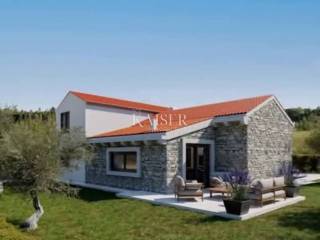 Kaiser Immobilien agency offers an authentic house with a swimming pool, currently under construction, with a completion date of the end of 2025. It is located in the small town of Čabrunići near Svetvincenat. Svetvincenat is a town located in the south-central part of Istria, halfway between Pula and Pazin. This Renaissance town is one of the Istrian gems with a rich tourist offer and numerous events that take place in the historical areas of this town. The symbol of the town itself is the Renaissance square Placa with the Morosini-Grimani castle, which is the most frequent host to numerous cultural events. It is also known for its beautiful nature, forests and vineyards. The plot of land measuring 614 m2 is surrounded on two sides by dry stone walls, is located in a dead end street at the end of the village, so it provides plenty of peace and security that the neighborhood will remain intact. The house is under construction, its area is 111 m2. The house is designed as a combination of modern current construction and authentic Istrian stone houses, with all the comforts and benefits of today. On the ground floor of the house, the living area is designed as an open space: living room, dining room (ceiling height in the living room and dining room is 5m) and kitchen, hallway, bathroom and one bedroom. The first floor is reached by an internal staircase and there are 2 bedrooms and a bathroom. Underfloor heating via heat pumps and a fireplace in the living room are planned, while cooling is provided by air conditioning in all rooms. The exterior joinery is PVC six-chamber DECEUNINCK/ELEGANT profiles, anthracite color, triple-layer glass, MACO fittings, HST lift-sliding walls. The exterior tiled terrace is 23m2 in size, the outdoor pool with the associated pool equipment is 28m2, and two parking spaces are planned. A final building permit has been issued for the house, all utility contributions and connections have been paid. In the immediate vicinity of the property there are houses of locals and holiday homes, so the house is ideal for enjoying the benefits offered by a quiet Istrian village or for investors who can generate excellent income from renting out a holiday home. Beach, sea: 15 km Pula airport: 20 km Rovinj: 25 km Munich, Vienna: 580 km Ljubljana: 190 km The agency commission for the buyer is 3% + VAT, and is paid only when the property is sold, when the first legal deed is signed. For all further information, please contact: Marijana Cuculić Phone: + 385 98 186 9950 E-mail: marijana.cuculic@kaiser-immobilien.hr