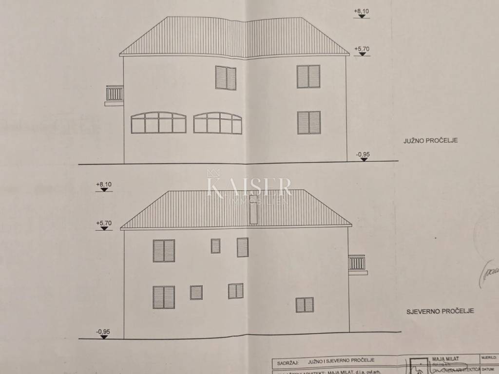 Kaiser Immobilien presents: House with two separate apartments and open views, Zablaće. A detached house with two completely separate apartments is for sale, located in an exceptionally quiet and attractive location in Zablaće, only 300 meters from the sea and a beautifully landscaped beach. This property is an ideal opportunity for a larger family or as an investment for tourist rental, offering privacy and proximity to all necessary amenities such as beaches, promenades, shops and cafes. ABOUT THE PROPERTY: The house is built on a spacious plot of 400 m², with a total area of 264 m². It consists of a ground floor and an upper floor, and contains two separate apartments, providing flexibility and comfort. An auxiliary building was also built on the plot as a detached object, with a floor area of 49.86 m², with three entrances, which is used as a summer kitchen, laundry room and storage room. LAYOUT: Ground floor apartment: Consists of a kitchen, dining room and living room in an open concept. Two comfortable bedrooms and a bathroom. Two practical storage rooms. Garage and storage room on the ground floor with direct access to the apartment. Apartment on the first floor: Access is provided via an internal staircase (Marble). It consists of a spacious living room with access to a large 19 m² terrace, which offers a beautiful, open view of the sea. Kitchen and dining room, two bedrooms and a bathroom. ADDITIONAL BENEFITS: The facade is built of natural white stone. The exterior carpentry is aluminum and wood. The roof is in excellent condition, renovated a few years ago. Both apartments are air-conditioned, furnished and ready to move in. In front of the house there is a landscaped garden and several additional parking spaces. The property documentation is neat (Decision on the executed condition, neat ownership certificate). LOCATION: Zablaće offers a peaceful environment ideal for relaxation, but also excellent connections to larger cities and tourist attractions. The proximity of the sea and well-maintained beaches makes this property the perfect choice for those looking for a Mediterranean lifestyle. Do not miss this exceptional opportunity to become the owner of a property with great potential, whether for living or tourist rental! The agency commission for the buyer is 3% + VAT and is paid in the case of real estate purchase, at the conclusion of the first legal deed. Viewing the property is only possible with the prior signing of a contract on mediation in real estate transactions. If you want to visit the property in person, contact: Joško Bašić E-mail: josko@kaiser-immobilien.hr Tel: +385-91-511-2993 http://kaiser-immobilien.hr/