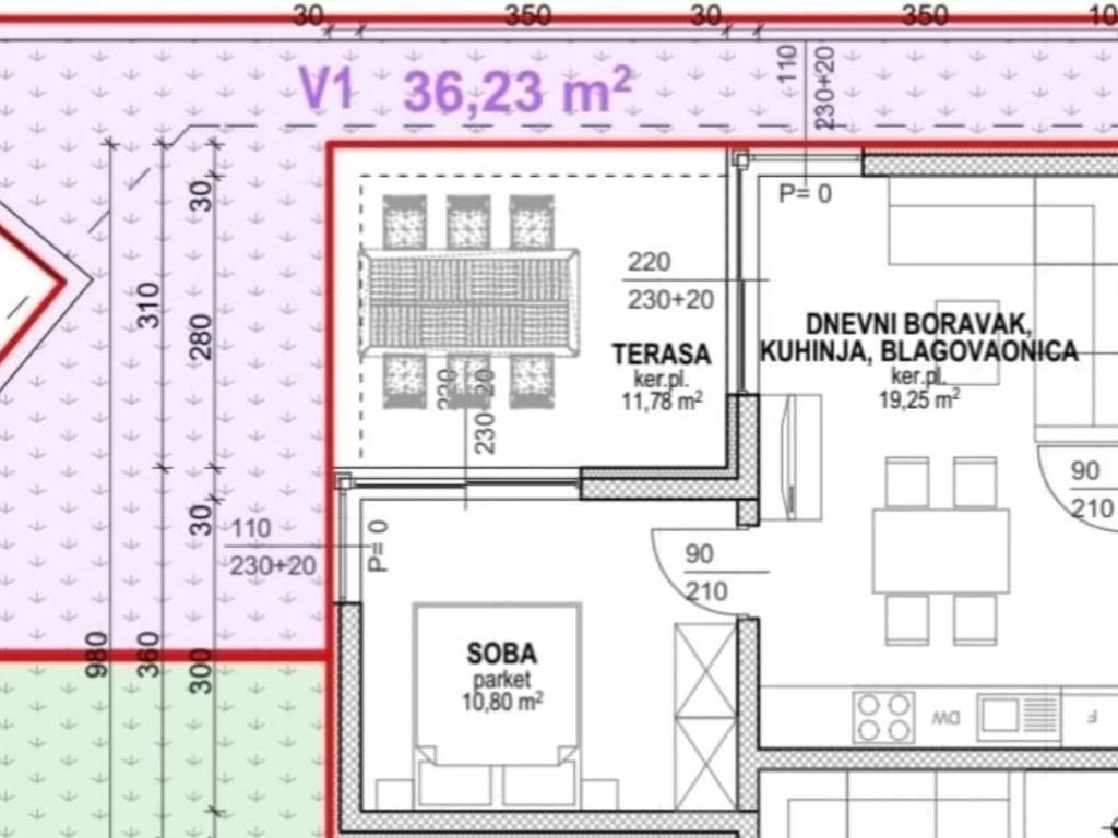 dnevnog boravka/blagovaone/kuhinje:19.25m2