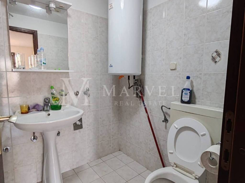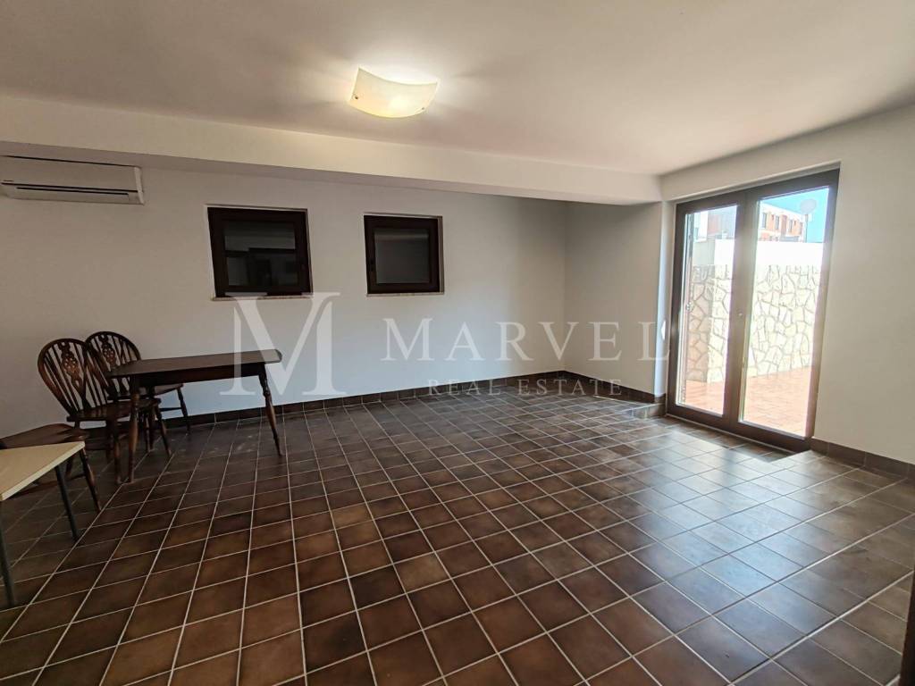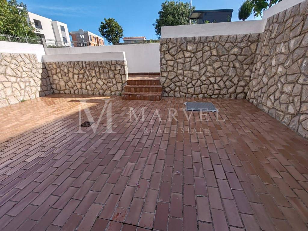 For sale is an apartment on the ground floor of a residential building, featuring a spacious 28 m terrace, partly covered, a small garden, and a storage room. The apartment has a functional layout and is ready to move in.