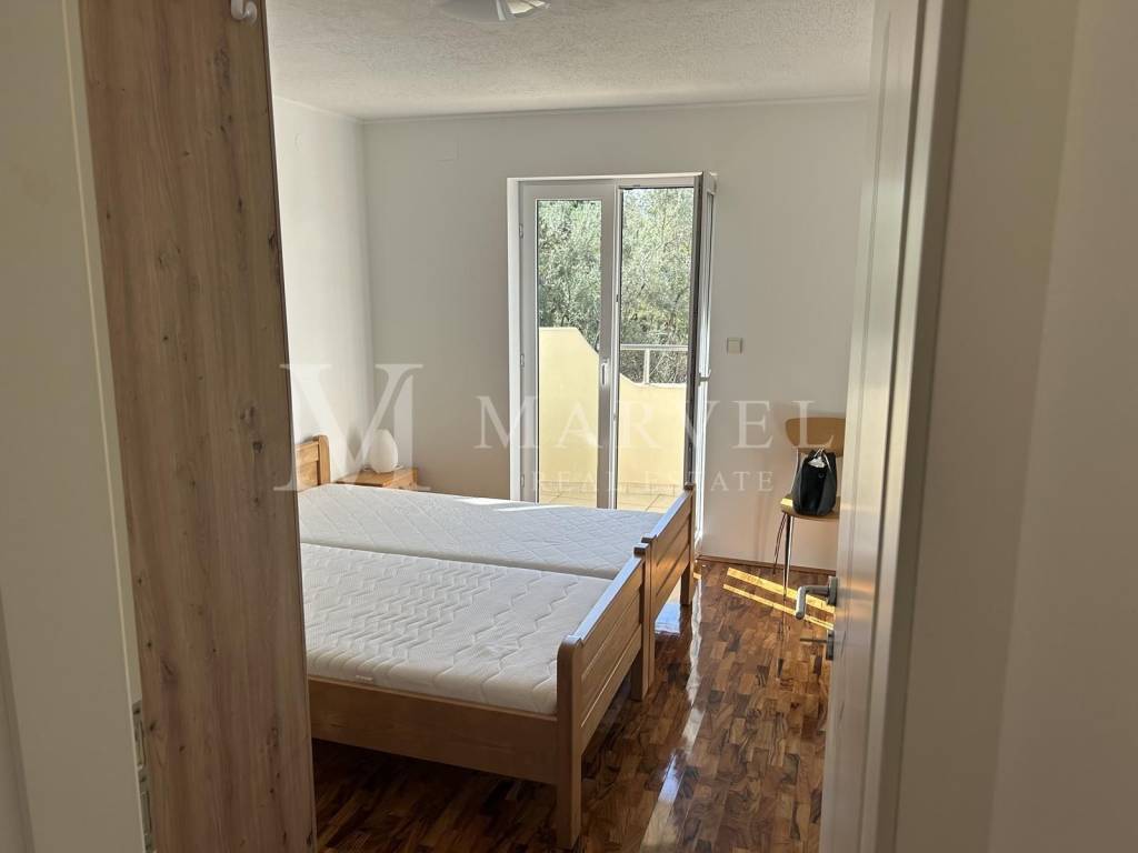 We are selling an apartment on the first floor of a building near the center of Malinska with all essential amenities. The apartment has a total area of 67 m and includes two bedrooms, each with its balcony, a bathroom, a kitchen with a living room, and access to a covered balcony with a sea view.