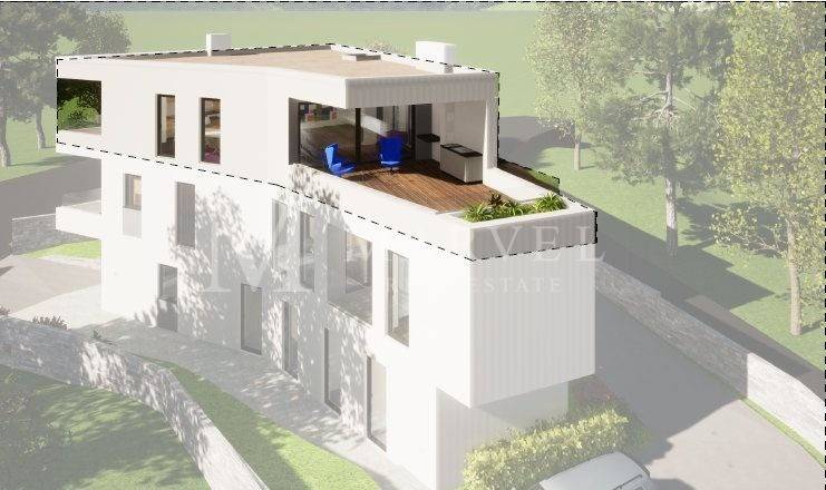 Penthouse on the 2nd Floor, New Building, Omišalj, Krk Island Stunning Sea View! We offer a luxurious penthouse on the 2nd floor of a new Omišalj, Krk Island building with a sea view. The apartment has a total area of 117 m, featuring a bedroom with a bathroom, a master bedroom with a walk-in closet and bathroom, an open-space kitchen with a dining and living area, and a 30 m terrace. Additionally, it includes 2 parking spaces and landscaped surroundings.