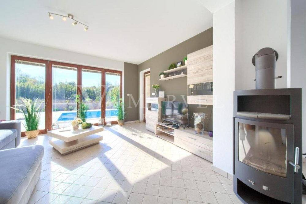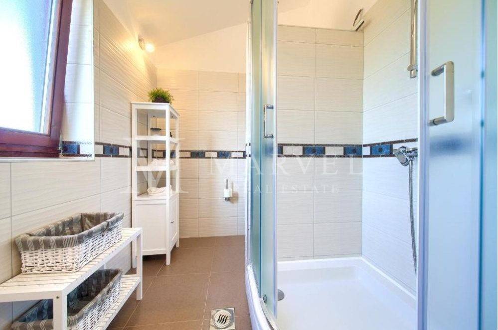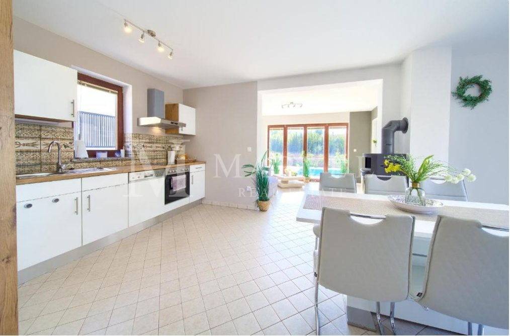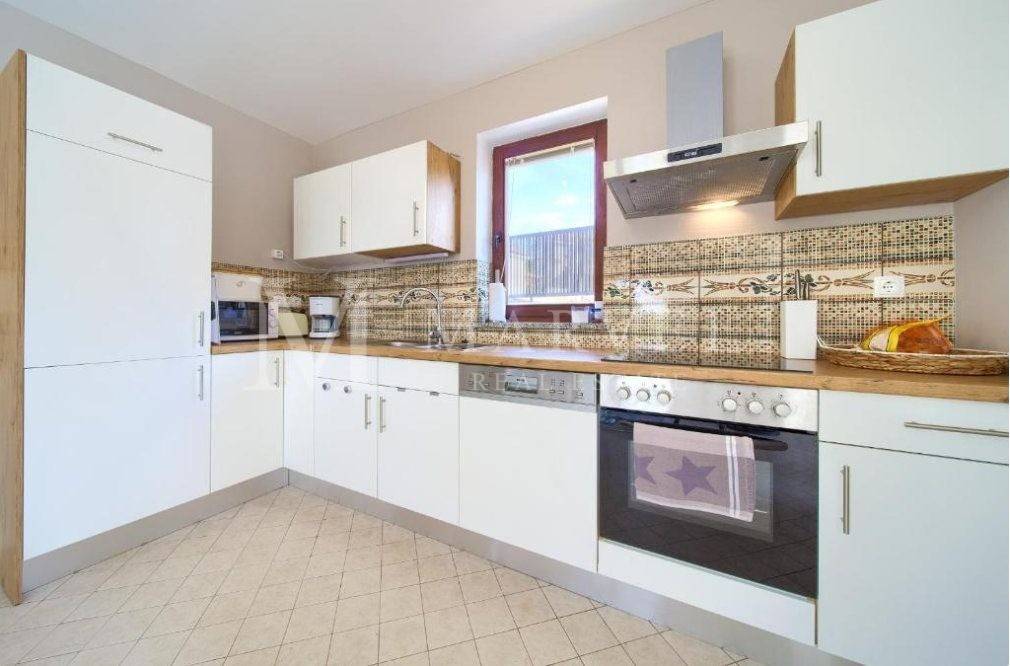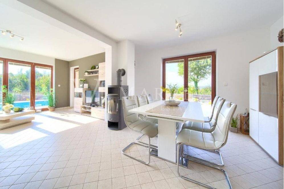 For sale is a fully furnished detached house with a pool on the Island of Krk, near Malinska. This property is ideal for a family or as an investment for rental, as it is registered for renting and has been successfully generating income for several years. With a total living area of 158 m and a yard of approximately 400 m, this house offers comfortable living in a tranquil environment.
