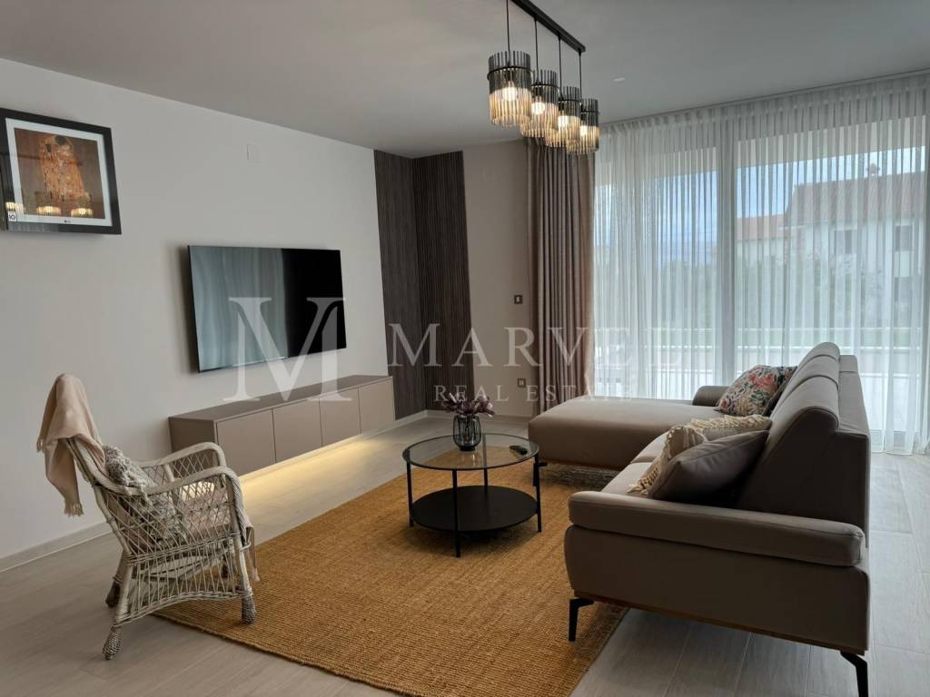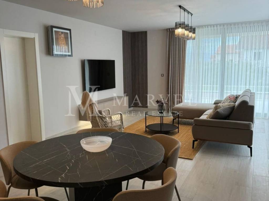 Furnished with basic furniture (custom-made kitchen with appliances, dining table and chairs, living room set, beds, wardrobes, bathroom furniture, and sanitary elements, TV in the living room)