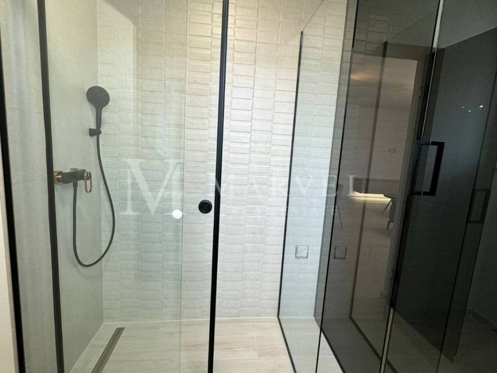 The first floor consists of three bedrooms and two bathrooms. One bedroom has a private bathroom, and all rooms have access to a terrace with a beautiful sea view.
