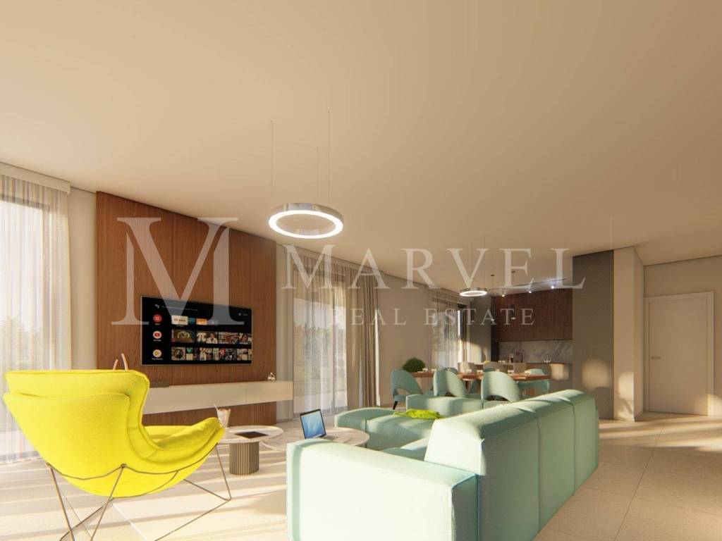 This modern house offers high-quality construction, a functional layout, air conditioning in every room, preparation for an alarm system, and heating via a heat pump.