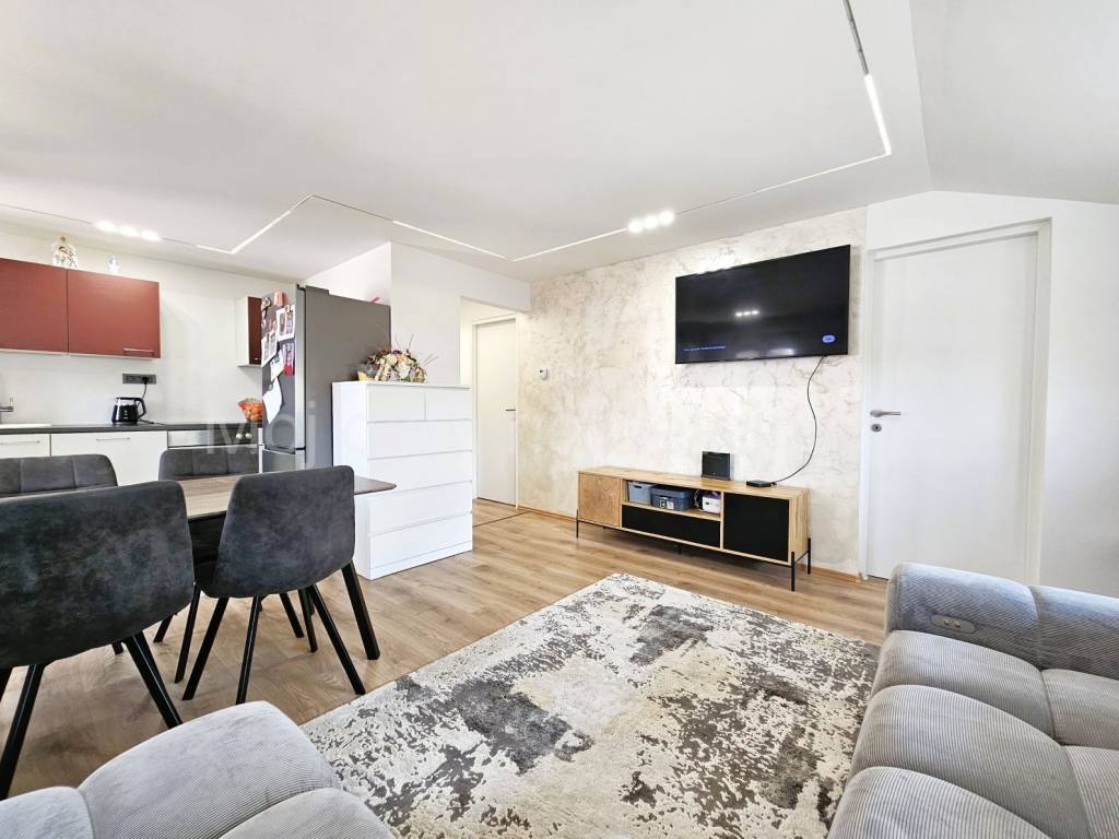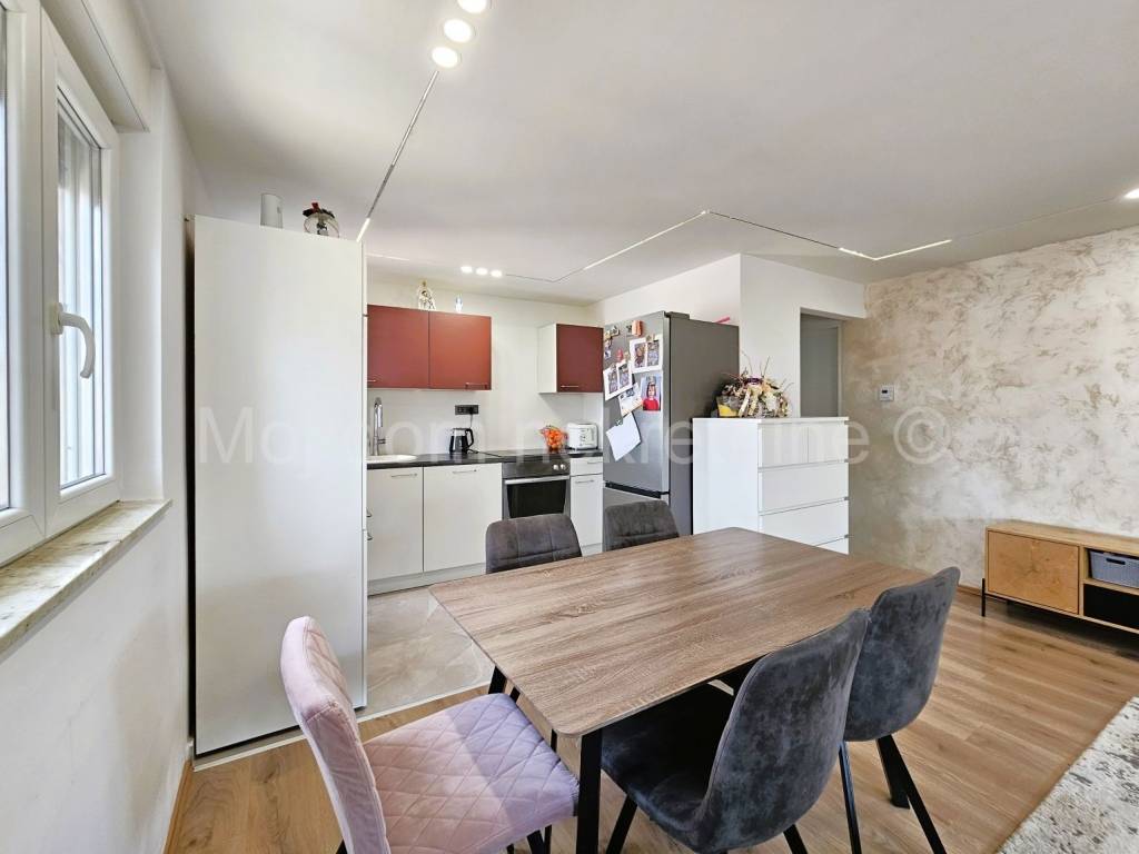 2024.g. stan je kompletno uređen (promijenjene instalacije struje i vode, uređeni podovi i zidovi, postavljena nova unutarnja stolarija te vanjska PVC s roletama i komarnicima, postavljen klima uređaj i protuprovalna vrata). Zakupljeno 11.50kW snage za el. priključak. Grijanje je na električni kotao (3kW do 9 kW snage), u stanu provedena i priprema za grijanje na plin po želji.